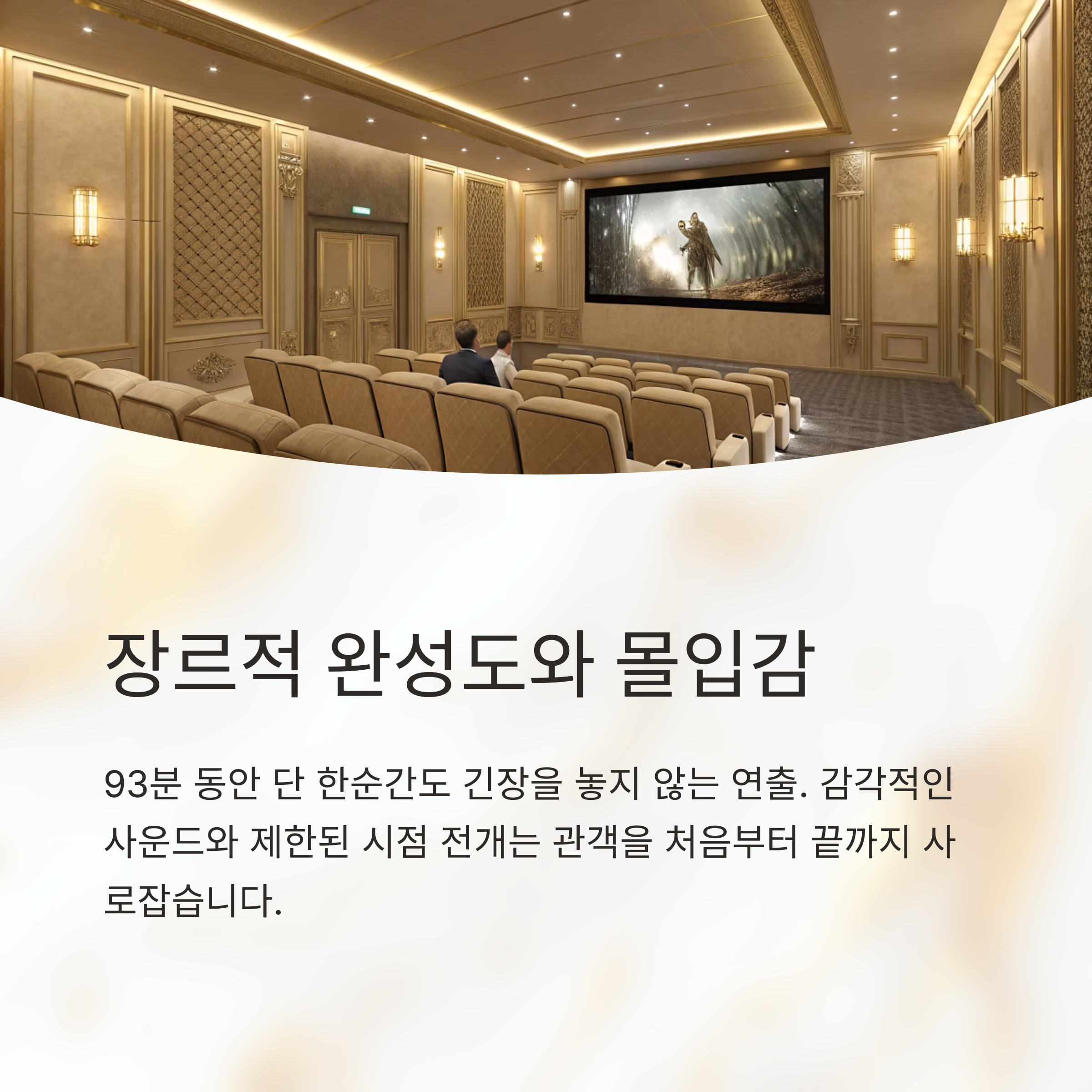 정교한 사운드와 강도 높은 심리 압박으로 전개해, “극장에서 경험해야 완성된다”는 평을 받고 있습니다.