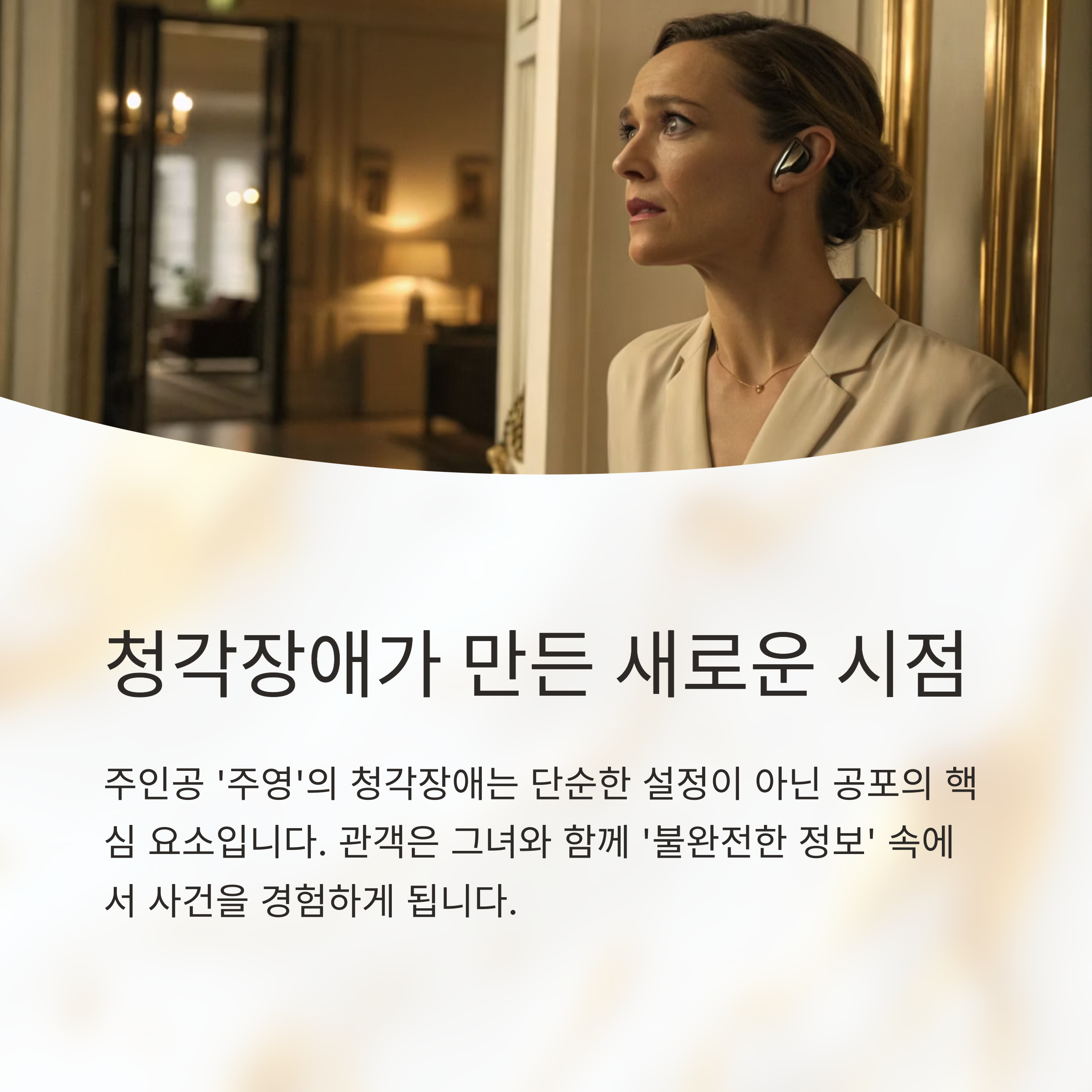 주인공 ‘주영’은 청각장애를 가진 인물입니다. 이는 단순한 설정이 아닌 공포의 구성 요소로 작용하며,