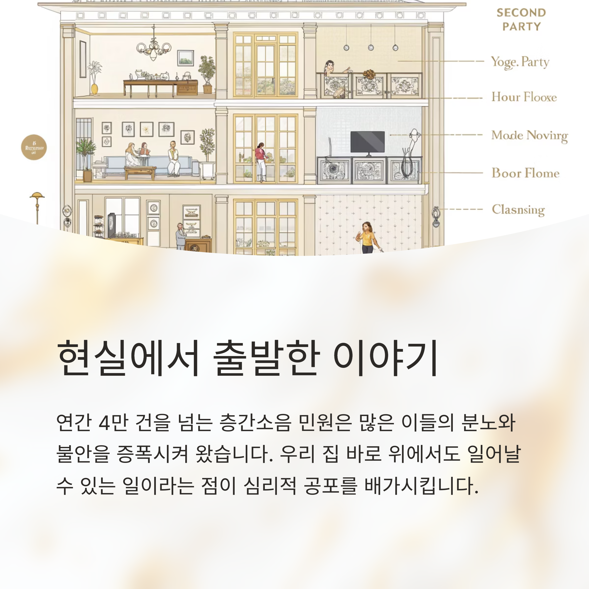 ‘노이즈’는 누구나 공감할 수 있는 층간소음 문제를 중심으로 이야기를 끌고 갑니다. 단순히 시끄럽다는