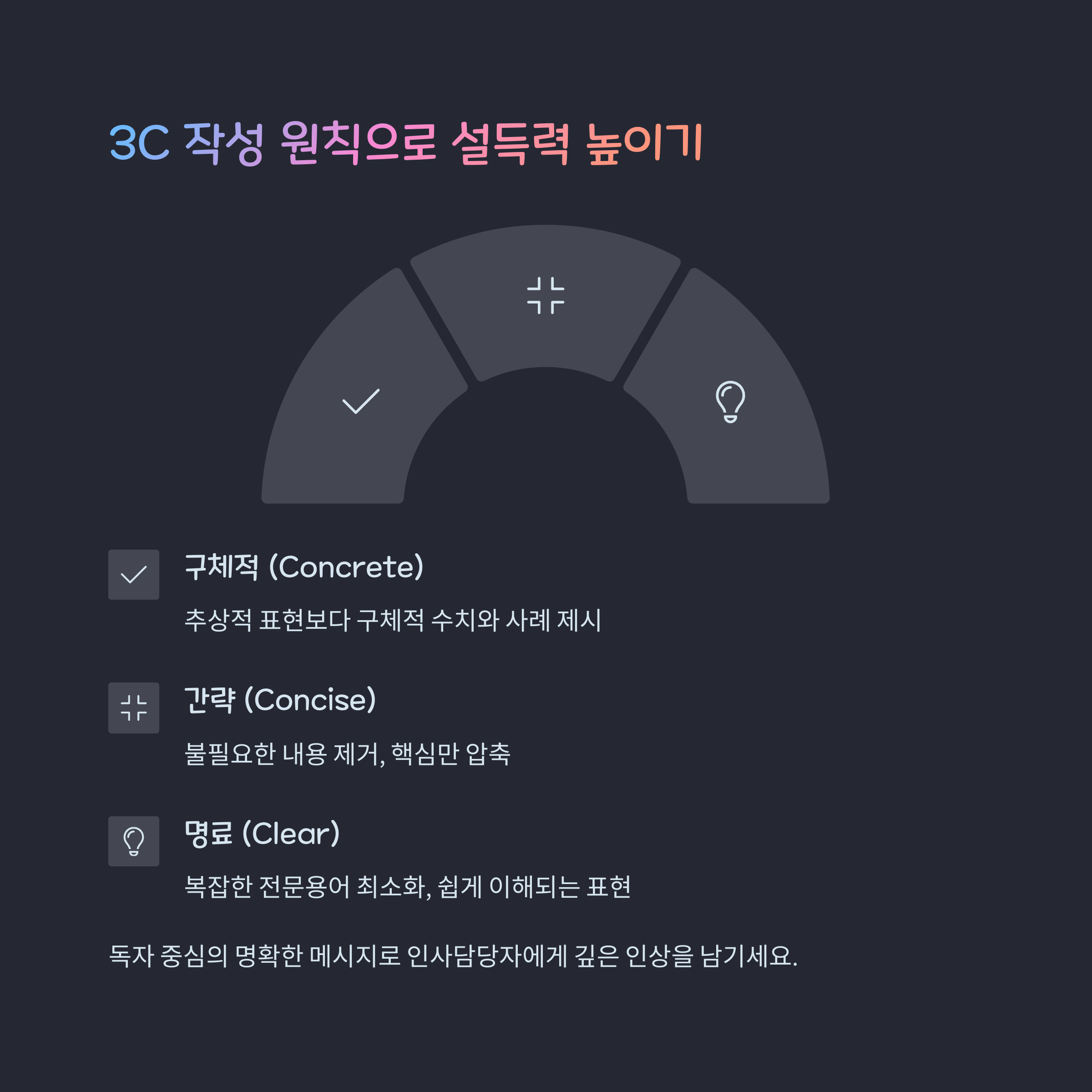 주장 → 근거 → 메시지의 흐름을 갖추세요. - 선택과 집중으로 작성하기