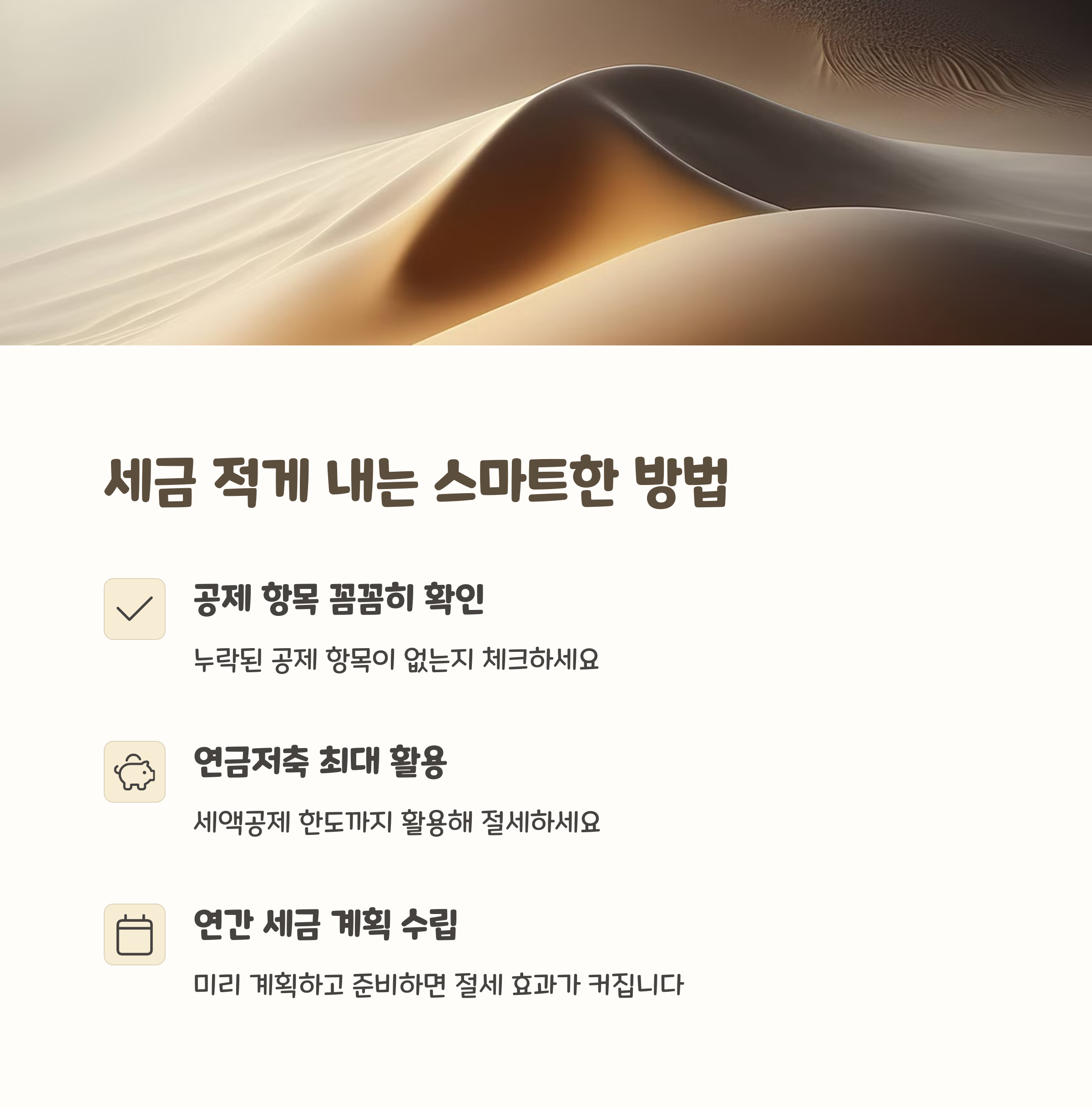 - 공제 항목 꼼꼼히 체크: 놓치기 쉬운 항목까지 확인