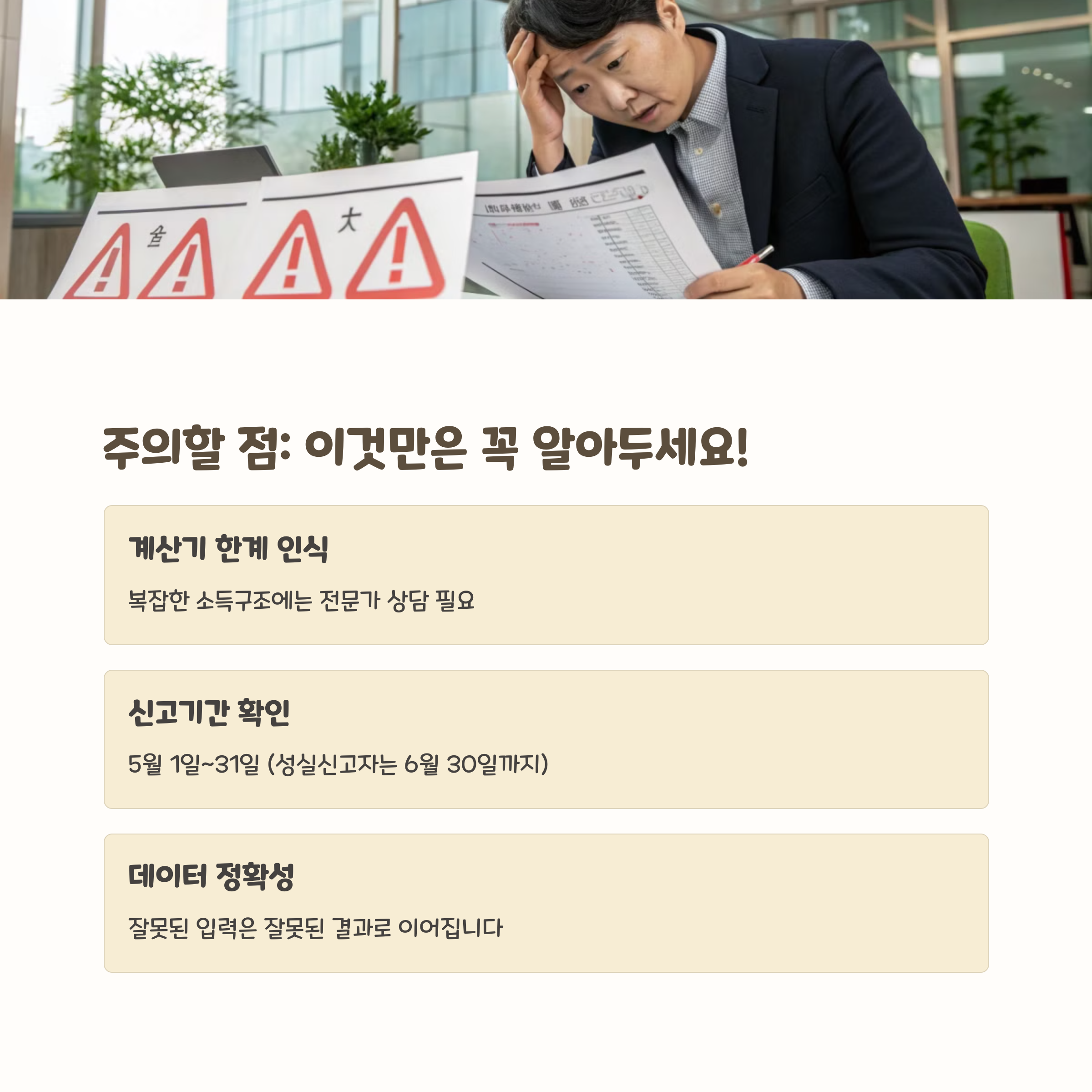 ⚠️ 종합소득세 계산기 사용 시 주의사항