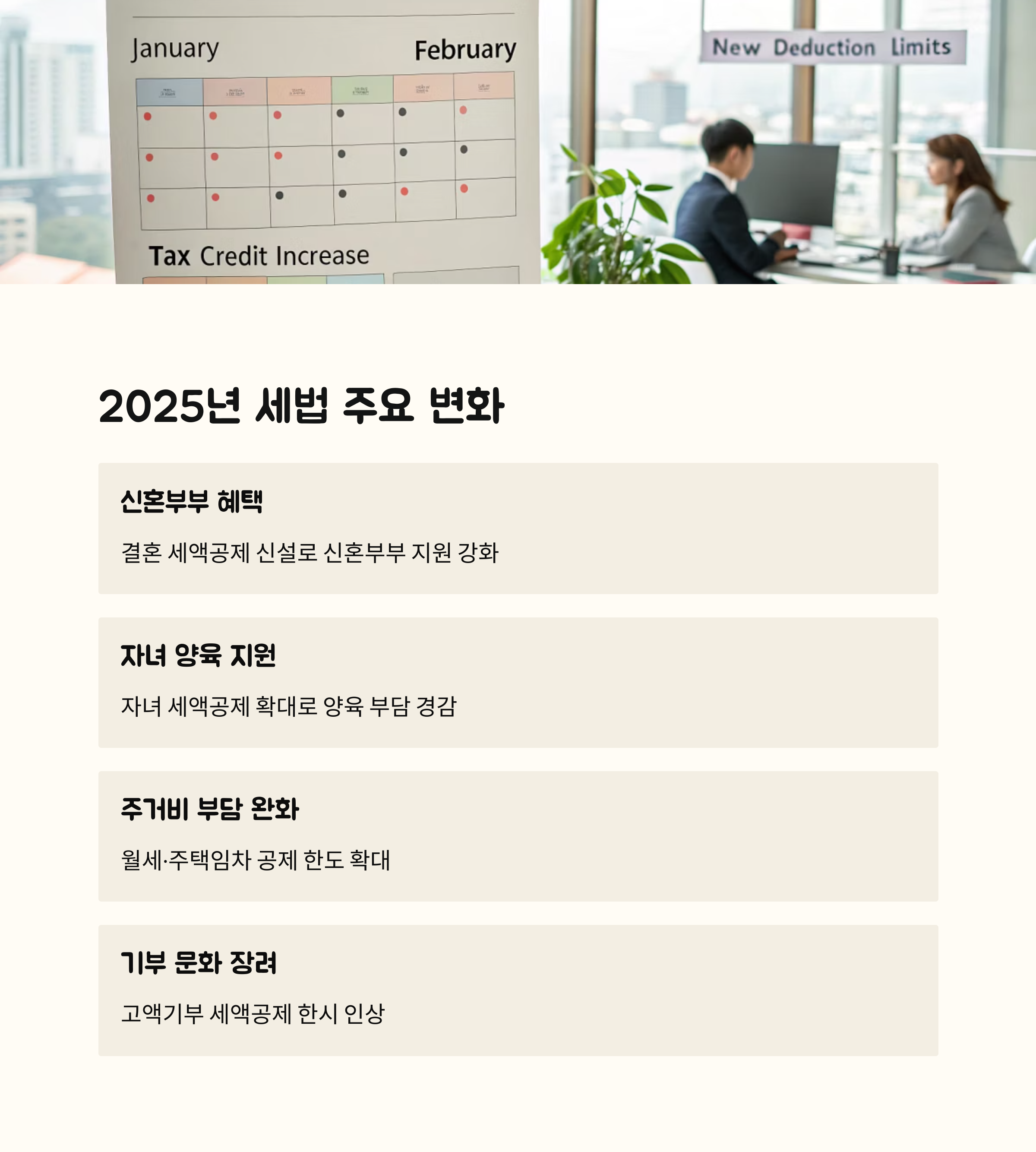 - 결혼 세액공제 신설: 결혼 초기 경제적 부담 완화
