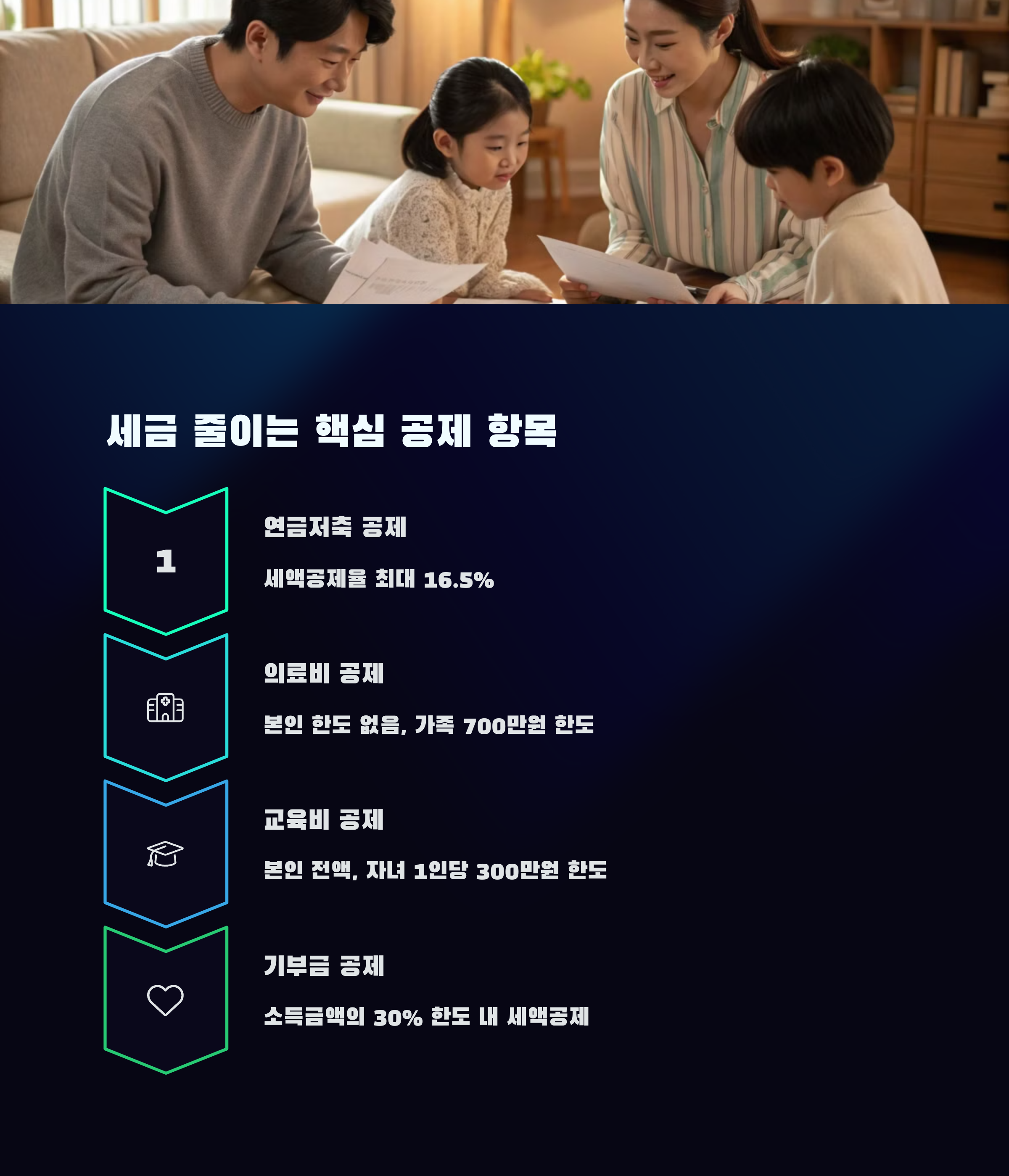 - 의료비, 교육비, 기부금 세액공제