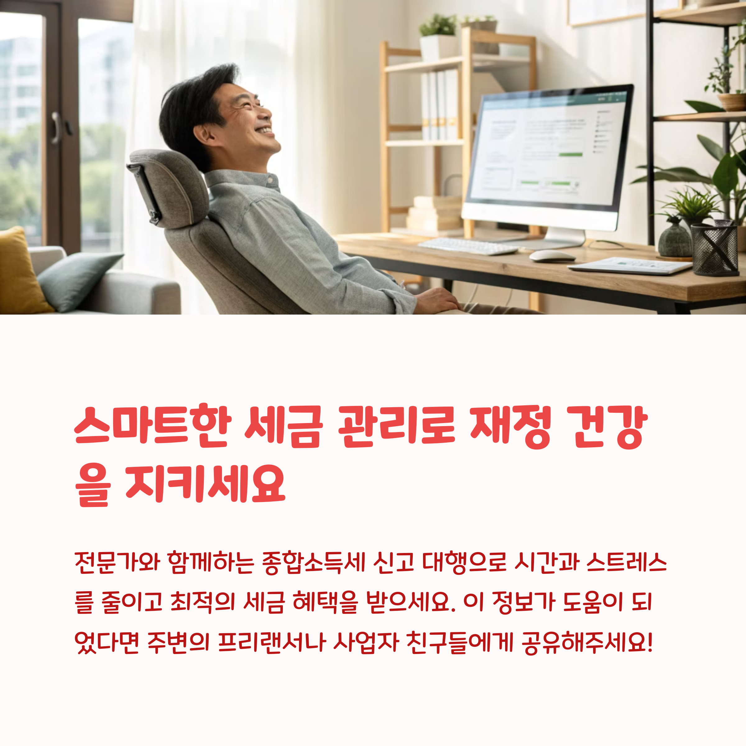 "종합소득세 신고는 단순히 세금을 내는 과정이 아니라, 합법적으로 절세할 수 있는 기회이기도 합니다."