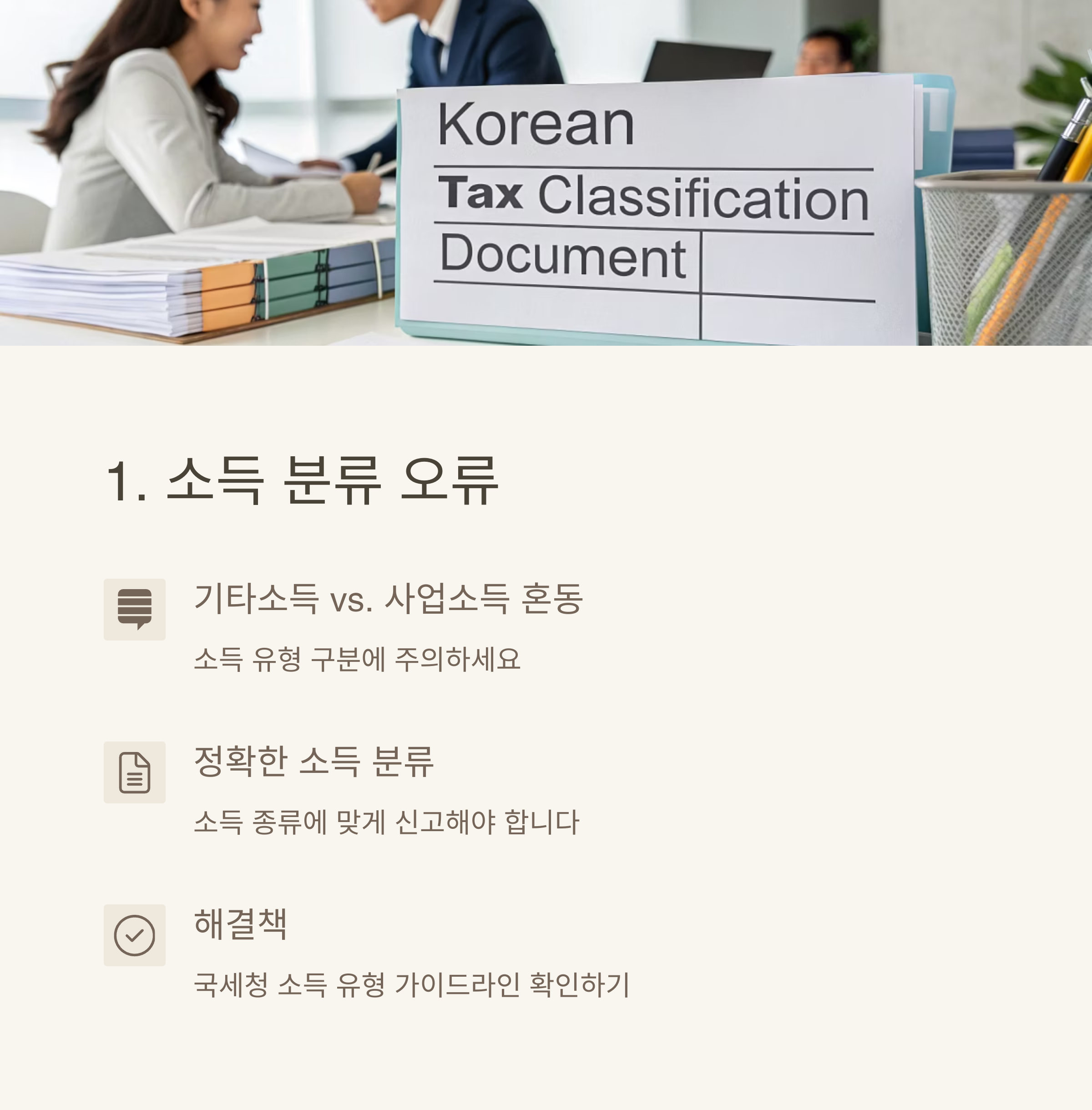 많은 납세자들이 소득 유형을 잘못 분류하여 세금을 더 내거나 세무조사의 대상이 됩니다. 특히 기타소득과 사업소득의 구분에서 오류가 많이 발생합니다.