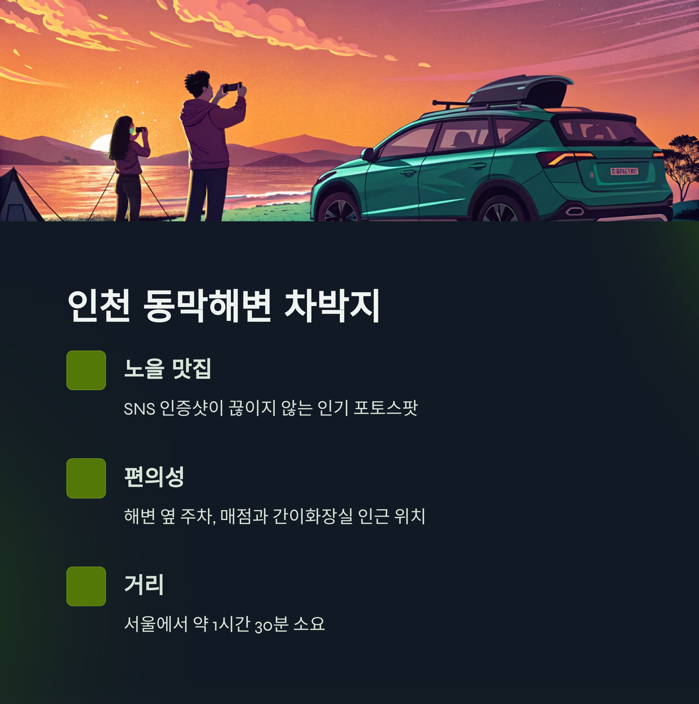 바다 감성 최고, 인천 동막해변 차박지