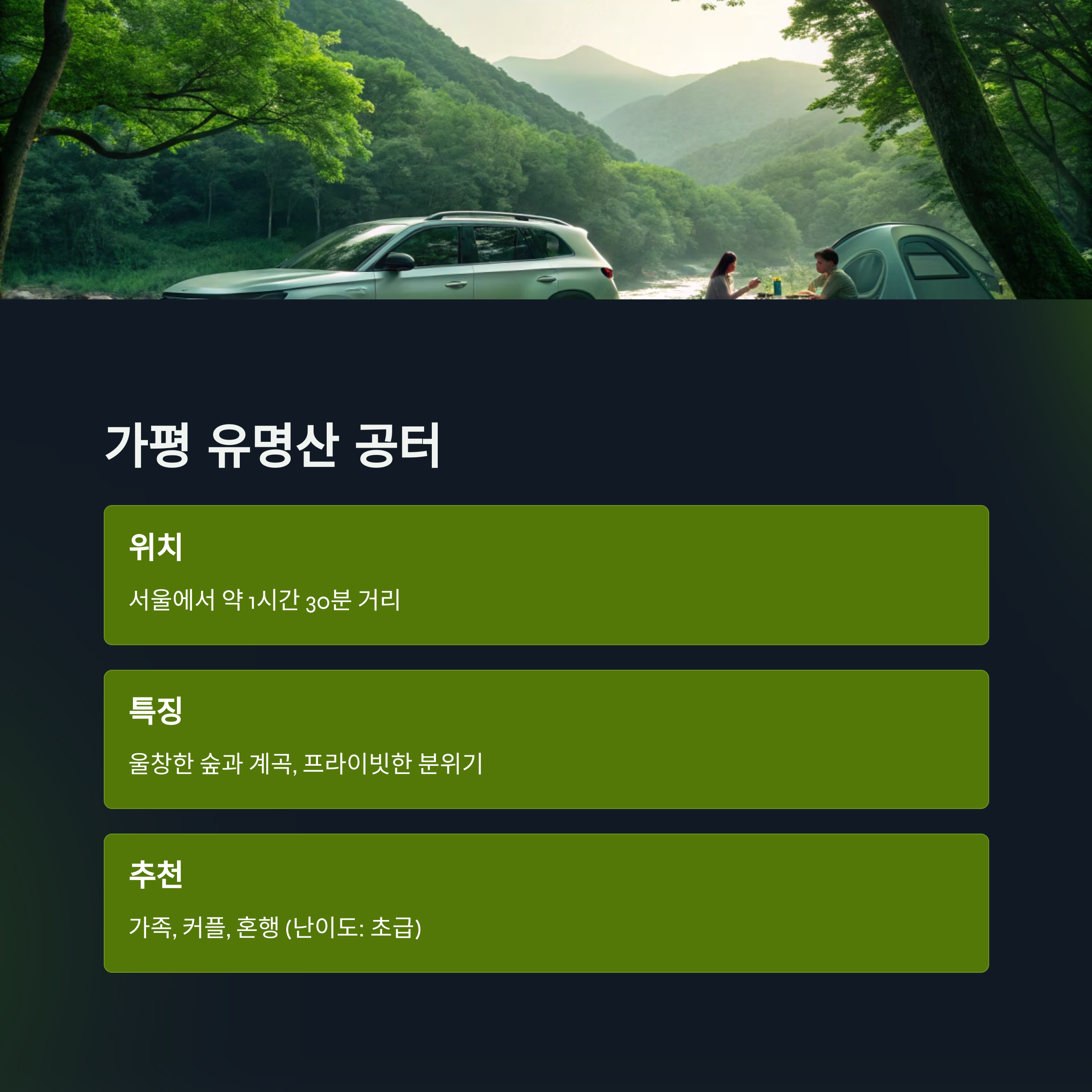 수도권 근교 차박 성지, 가평 유명산 공터