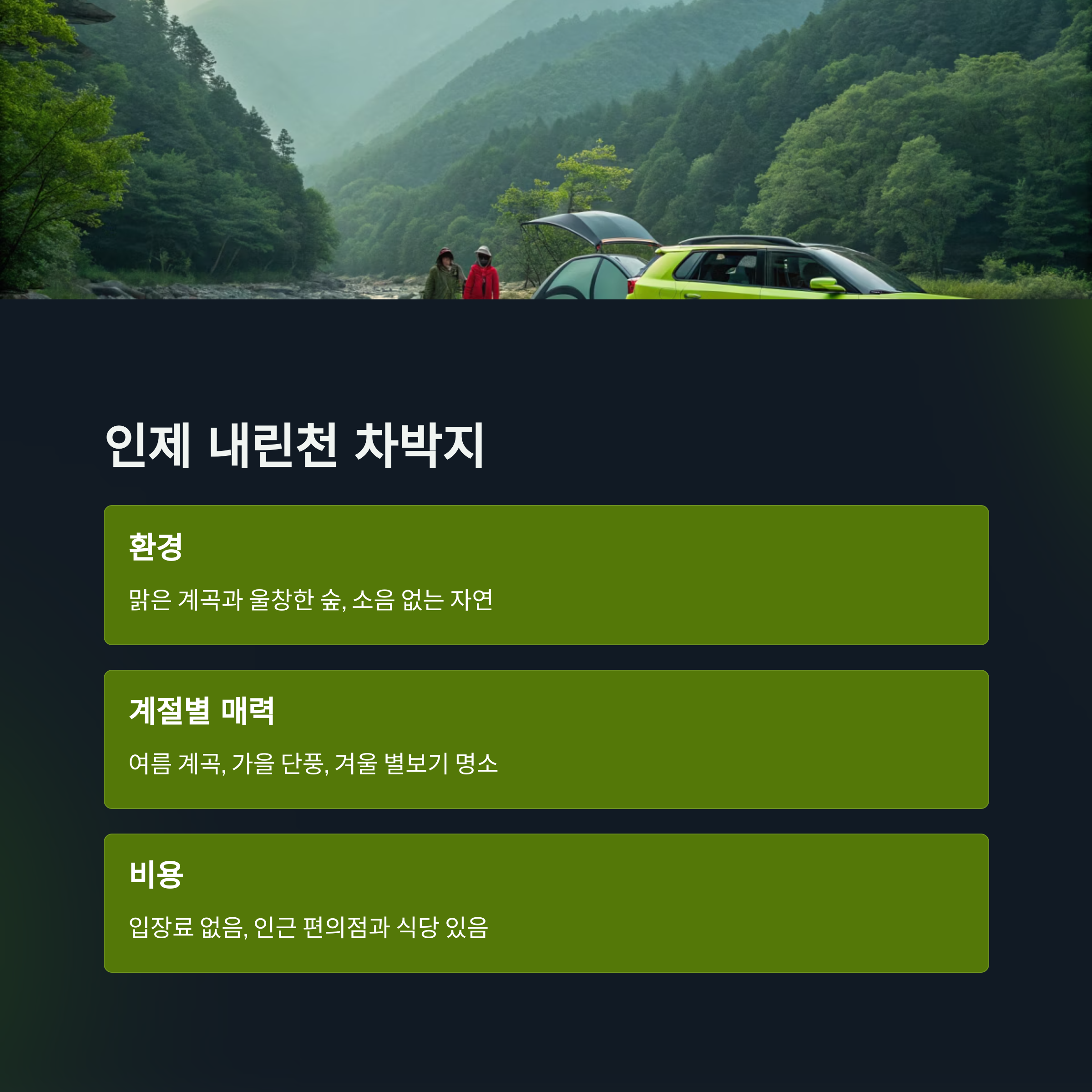 계곡과 숲이 함께, 인제 내린천 차박지