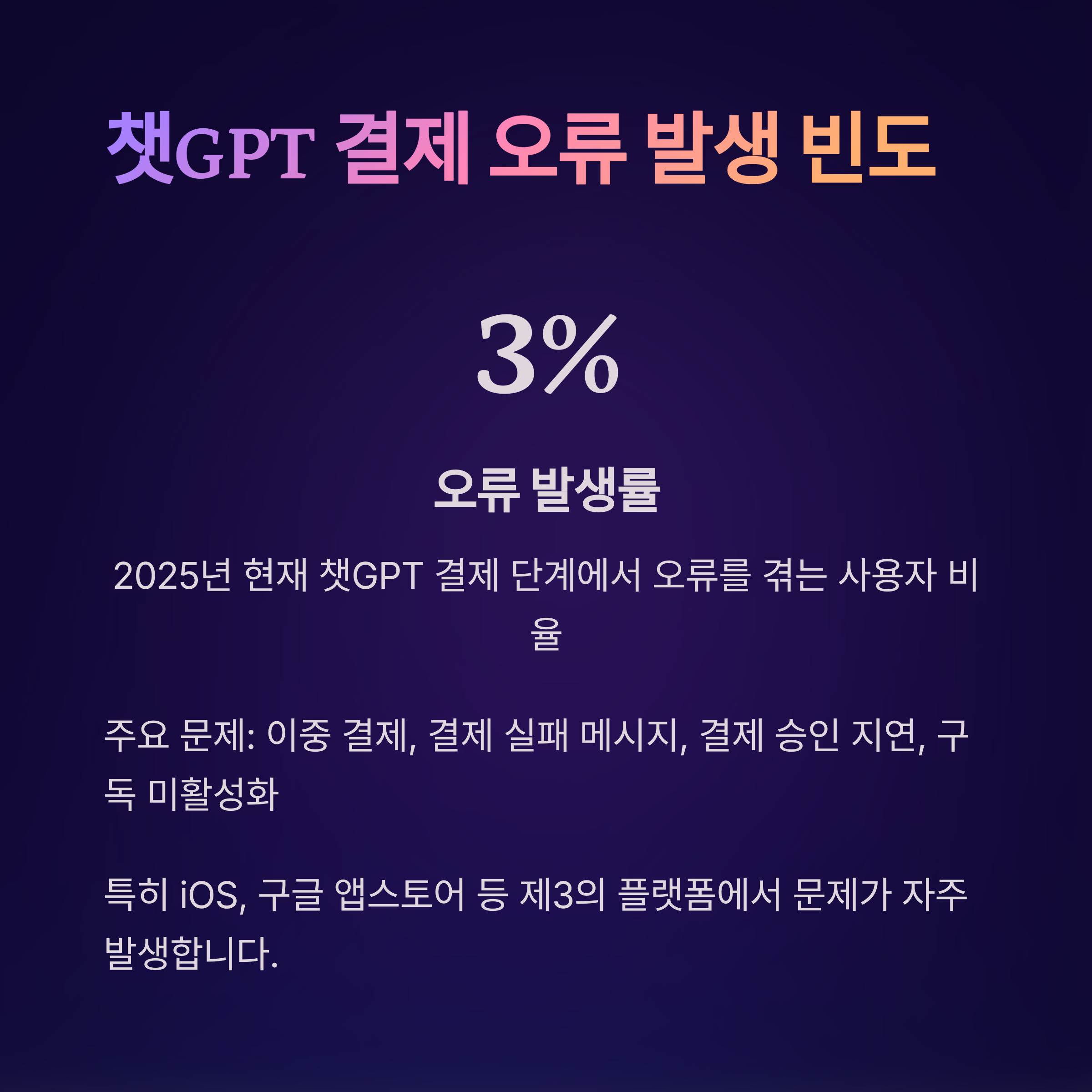 2025년 현재 챗GPT 결제 단계에서 오류를 겪는 사용자는 약 3퍼센트에 달합니다.