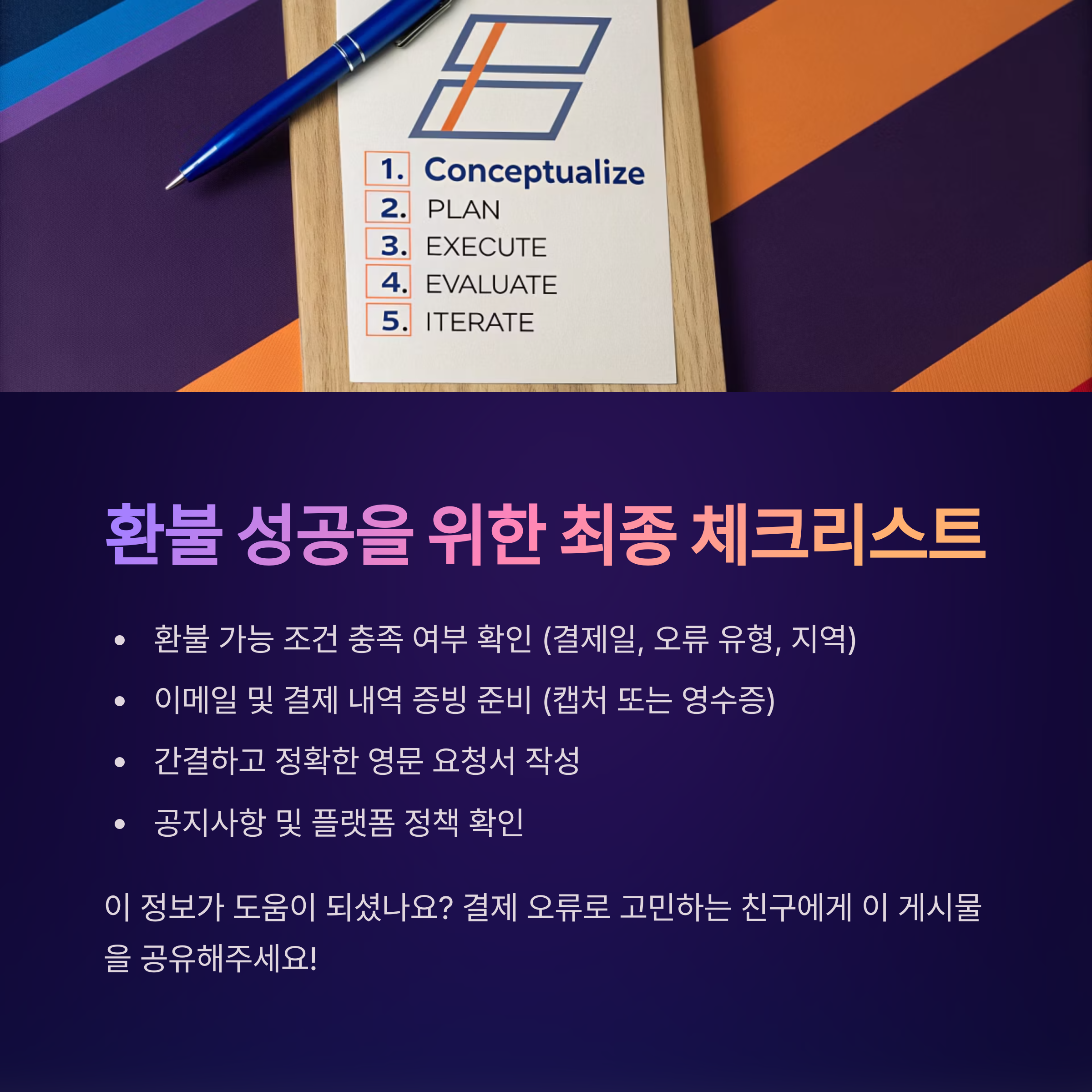 무엇보다도 이메일 주소, 결제 내역, 사유 명시가 가장 중요하다는 점을 기억하세요.