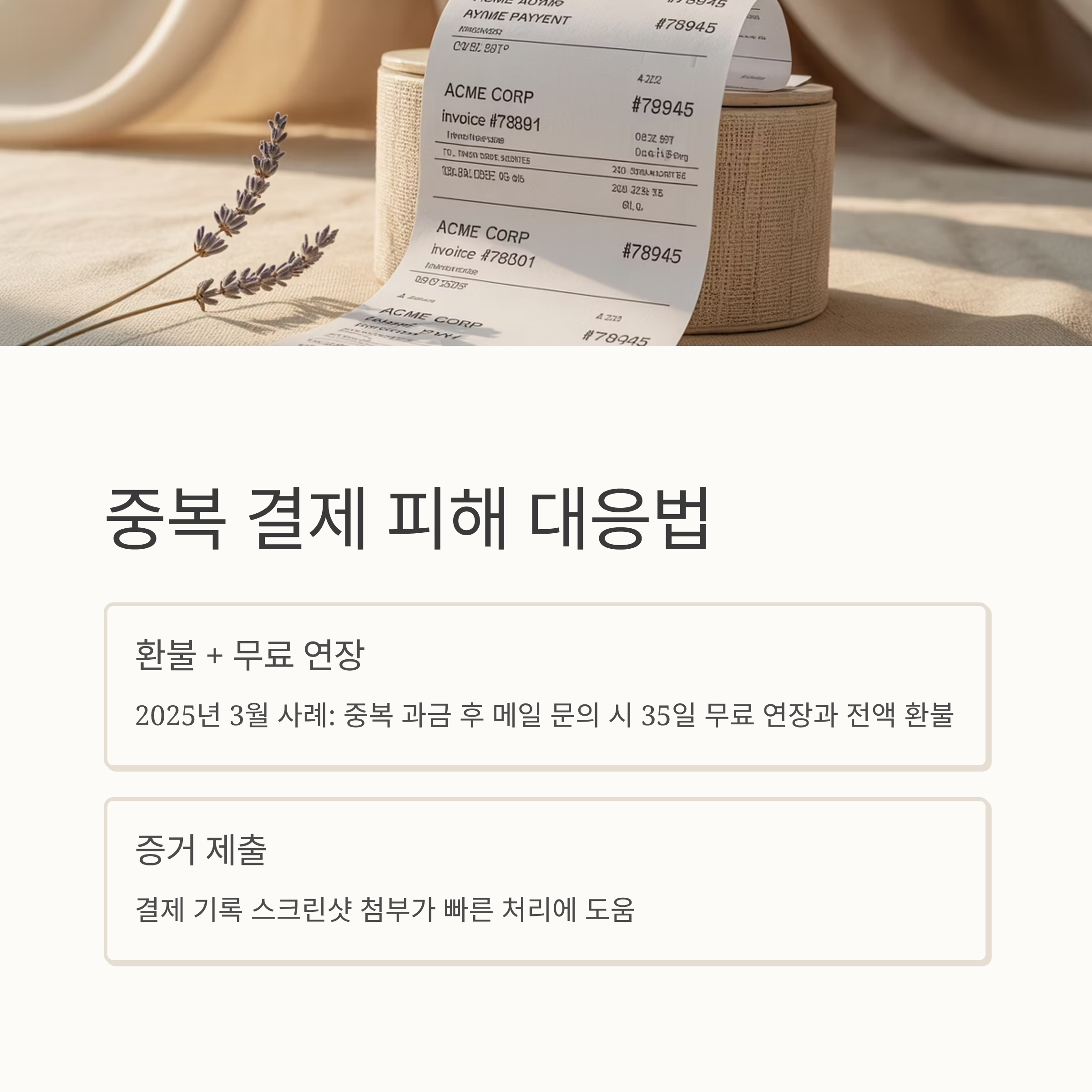 중복 결제 문제는 2025년에도 여전히 발생 중입니다. 동일 월에 같은 카드로 두 번 이상 결제된