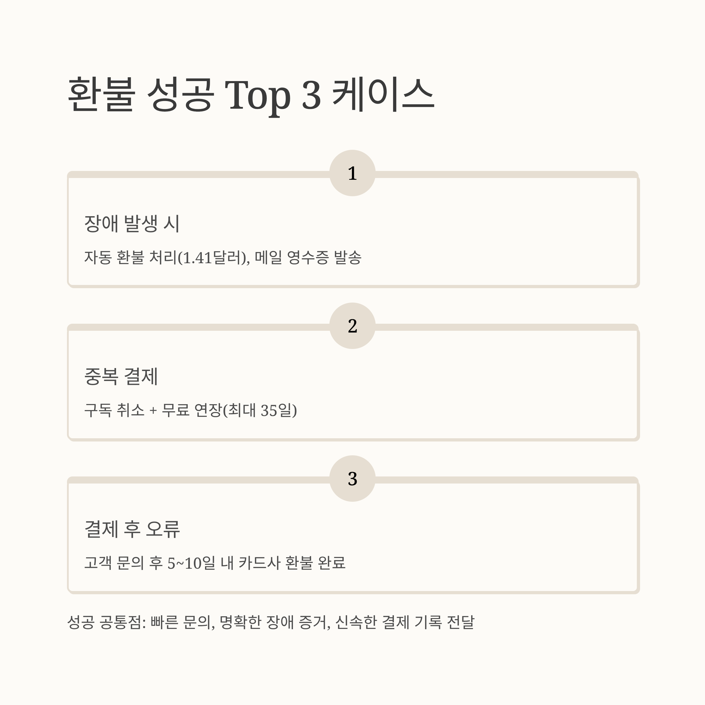 실전 후기 요약: 환불 성공 Top 3 케이스
