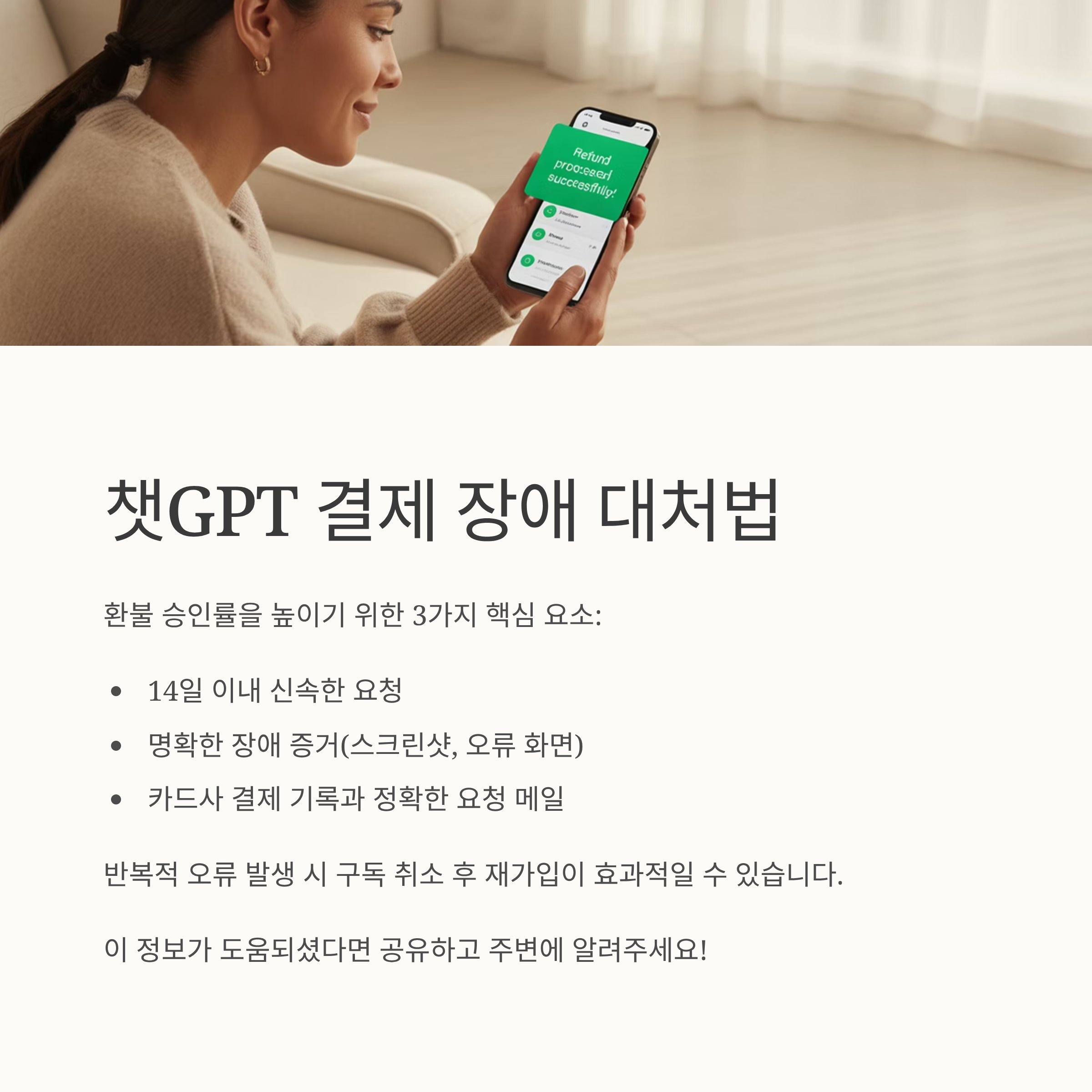 환불 승인률을 높이기 위해서는 다음 3가지를 반드시 갖춰야 합니다.