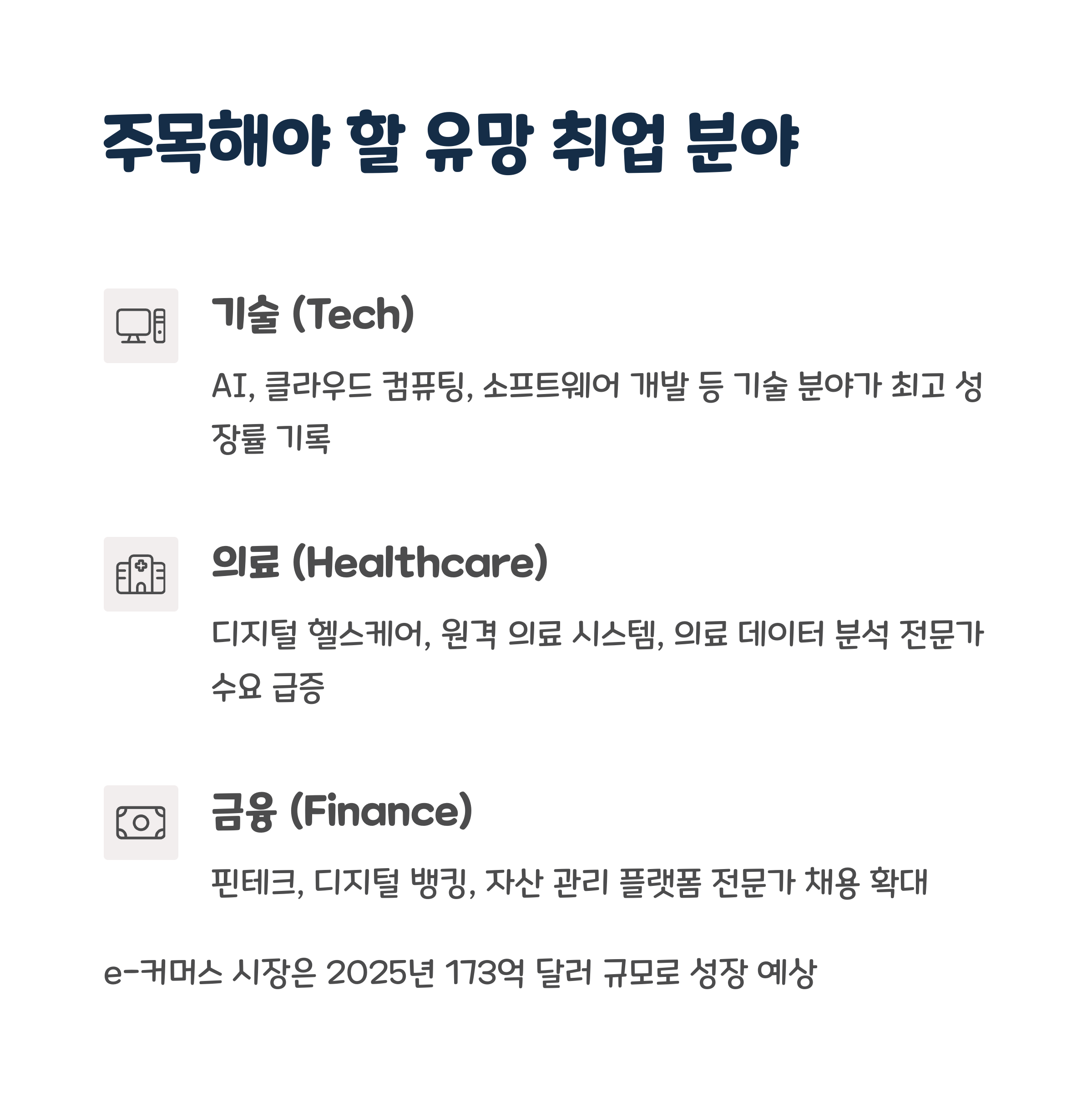 - 취업 박람회, 유튜브 채널, 커뮤니티 등을 활용해 다양한 취업 정보를 수집하세요.