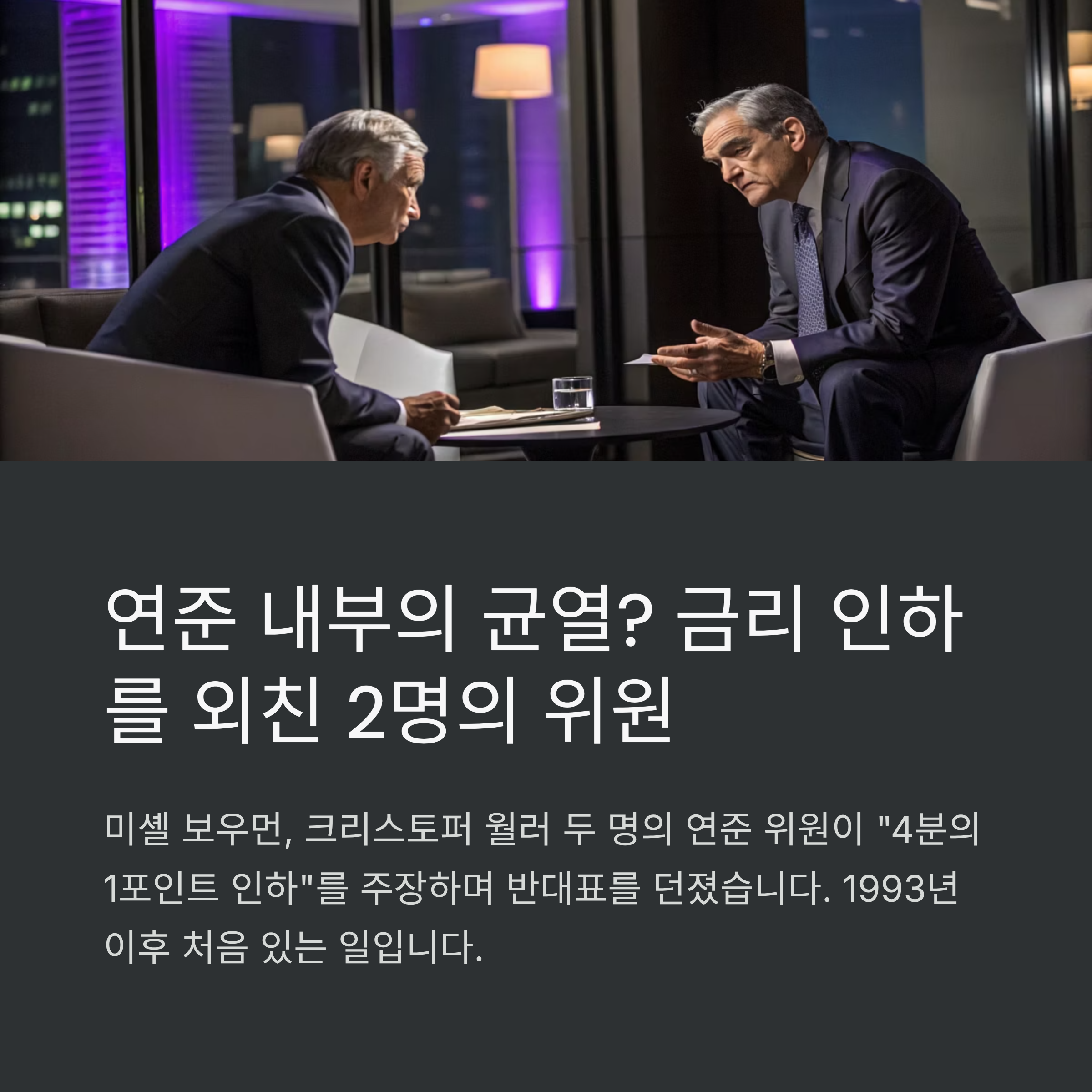 🤝 연준 내부의 균열? 금리 인하를 외친 2명의 위원
