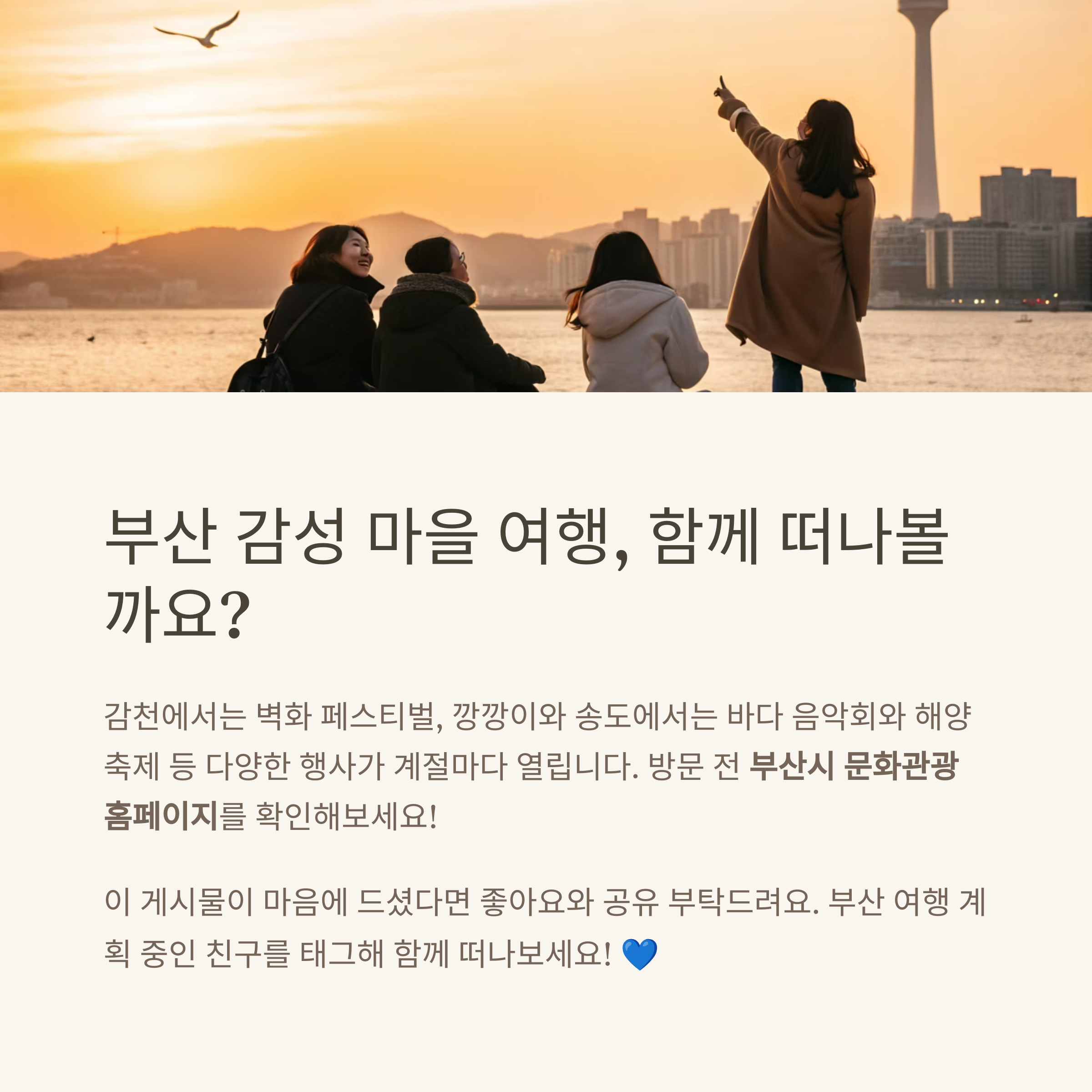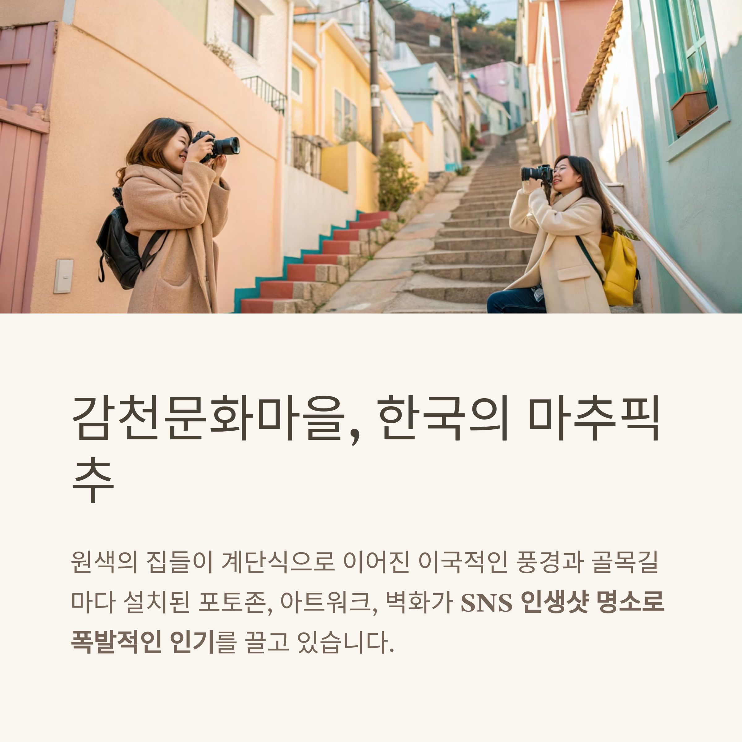 최근 SNS 상에서 사진 맛집, 감성 골목으로 주목받고 있는 부산의 대표 마을 여행지들이 하루 코스로 구성되어 큰 인기를 끌고 있습니다.