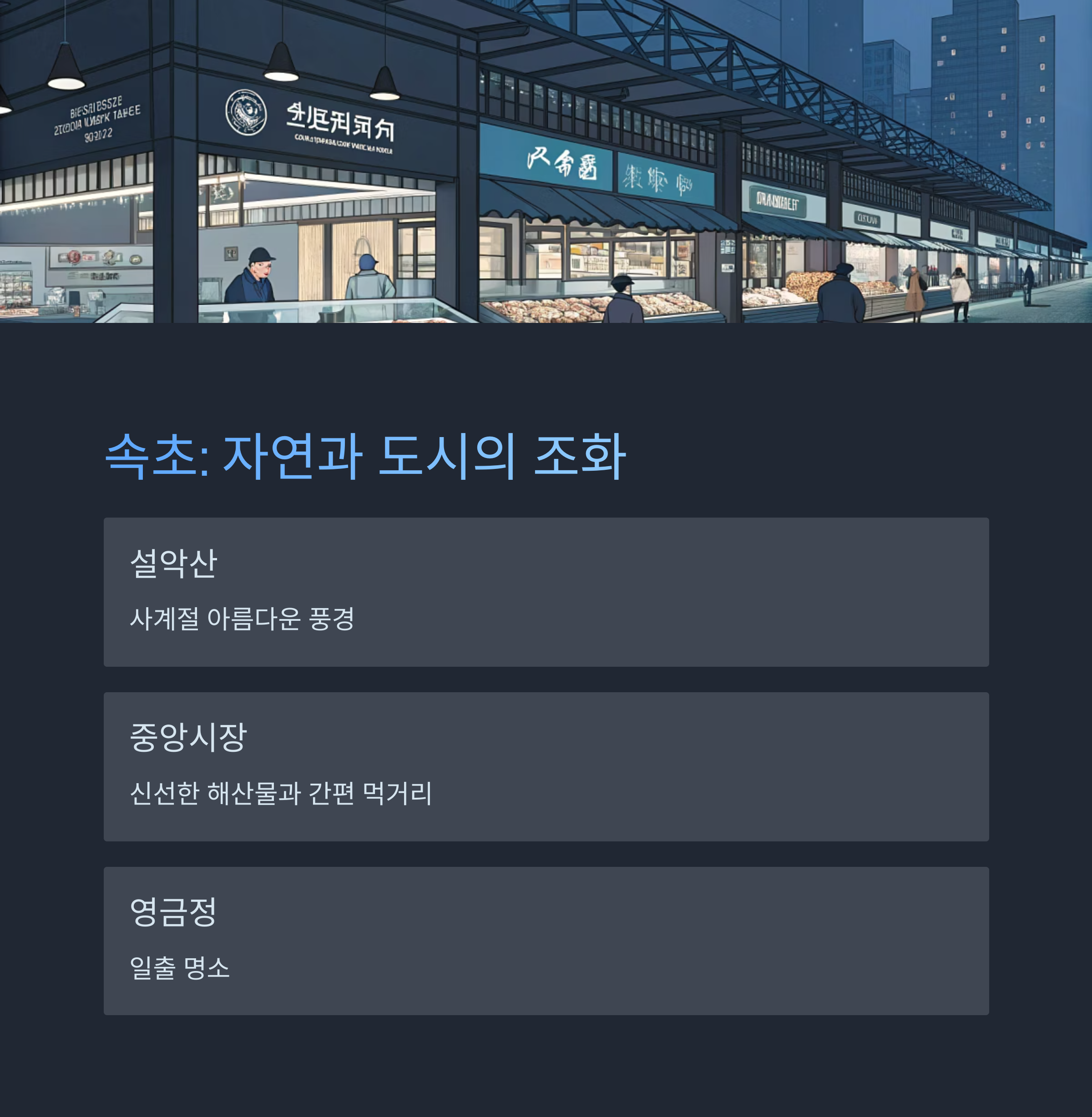 - 핵심 명소: 설악산, 속초 중앙시장, 영금정