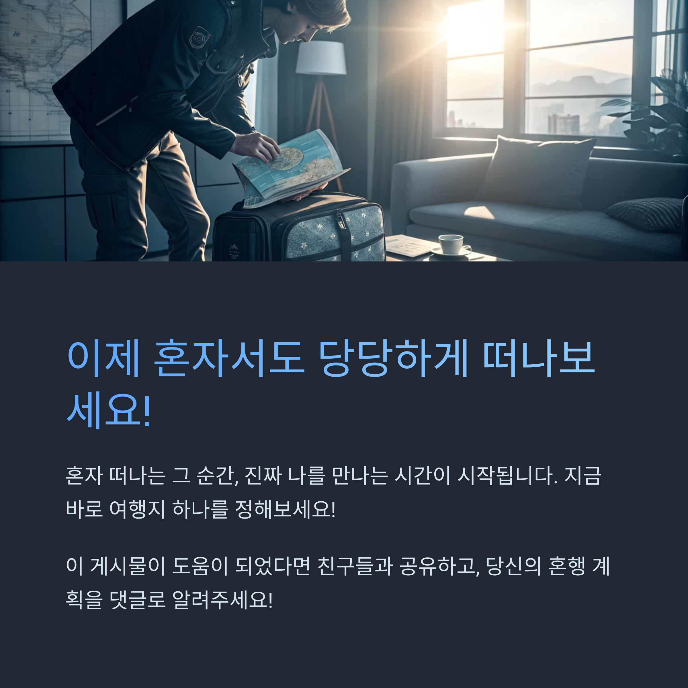 혼자 떠나는 그 순간, 진짜 나를 만나는 시간이 시작될 테니까요.