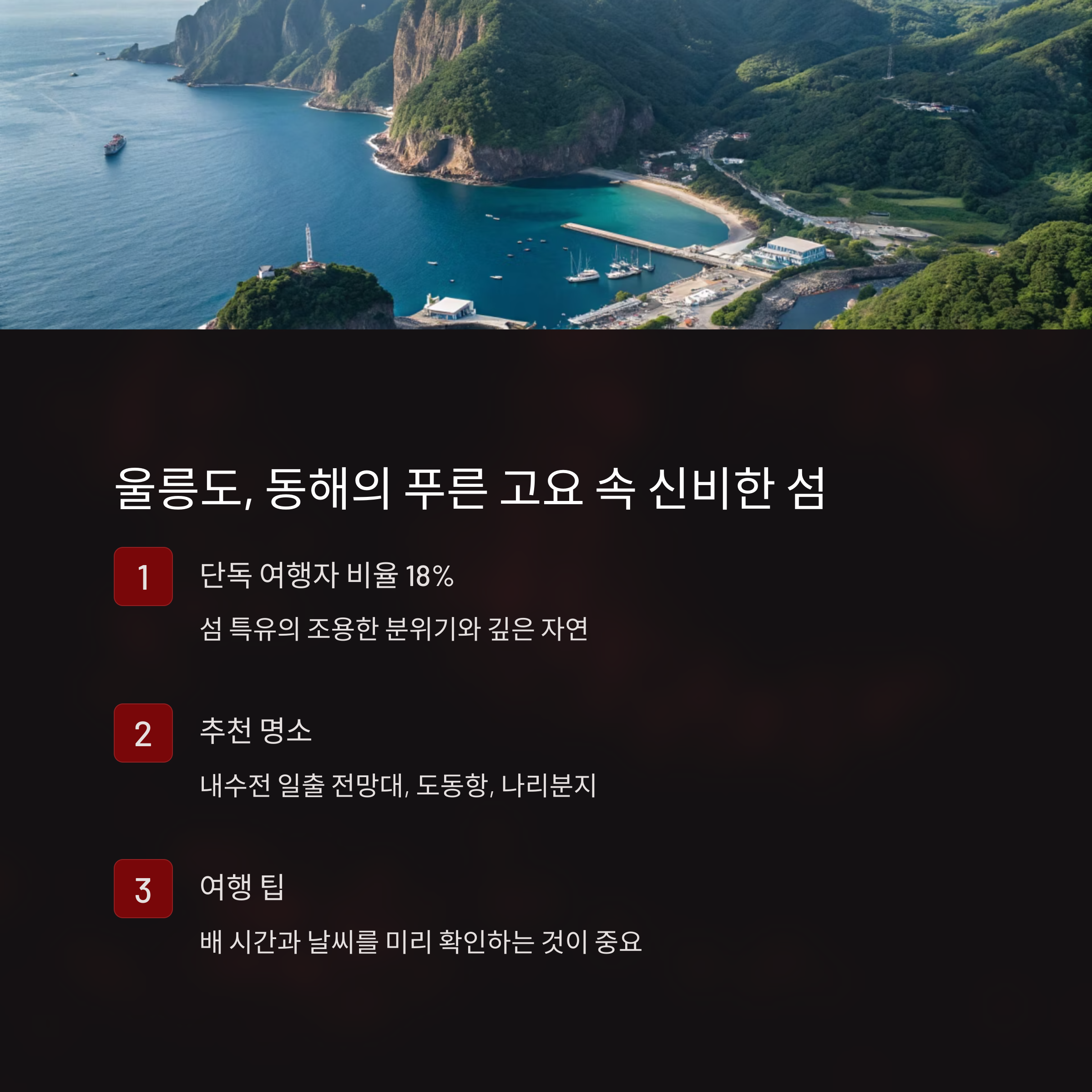 2025년 기준 울릉도를 찾은 여행자 중 18%가 혼행족으로 분석되었습니다.