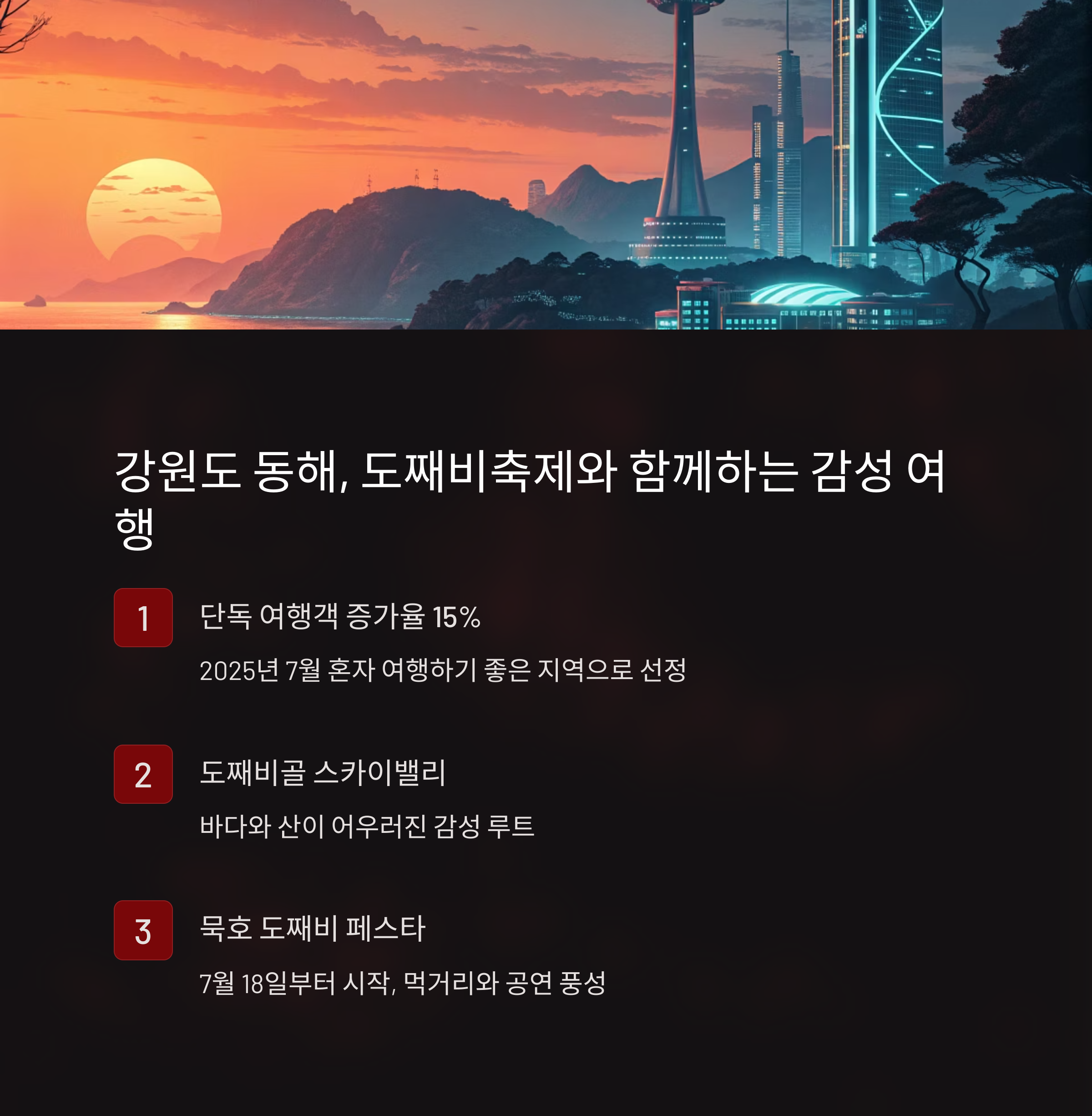 2025년 7월, 강원도 동해시는 단독 여행객 증가율 15%를 기록하며