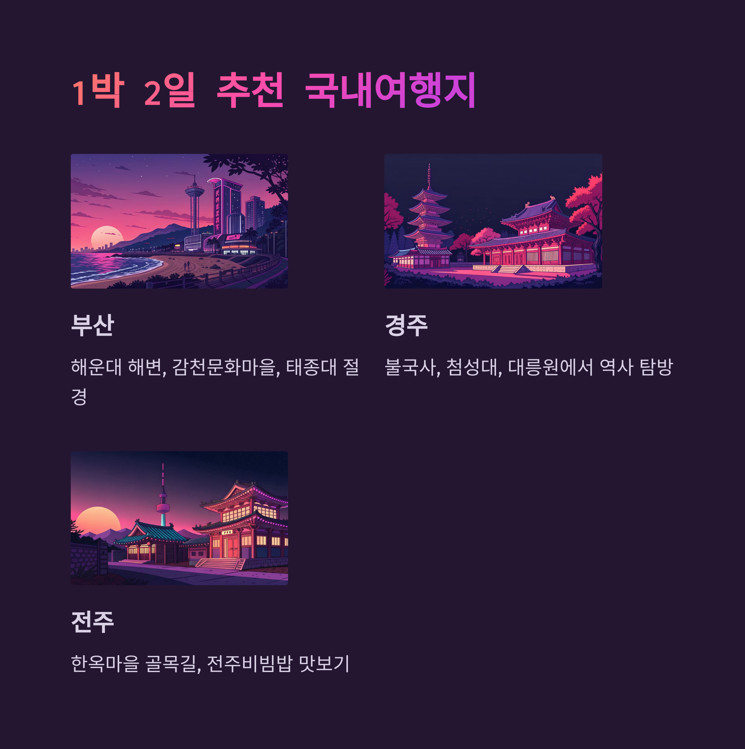 1박 2일 국내여행, 정말 설레는 일정이죠?
