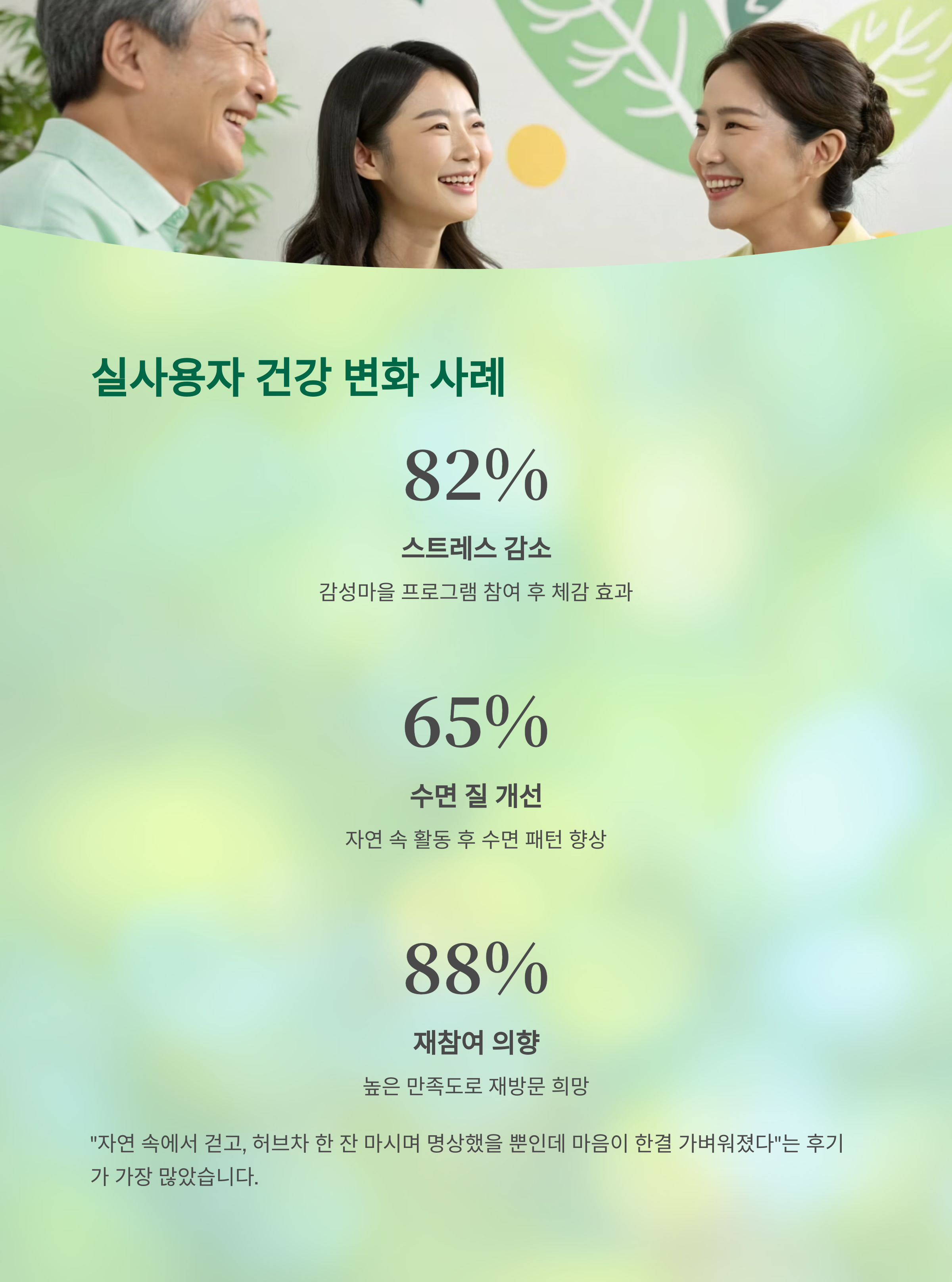 | 노년층 | 산림 명상+족욕 | 순환 개선, 통증 완화 |