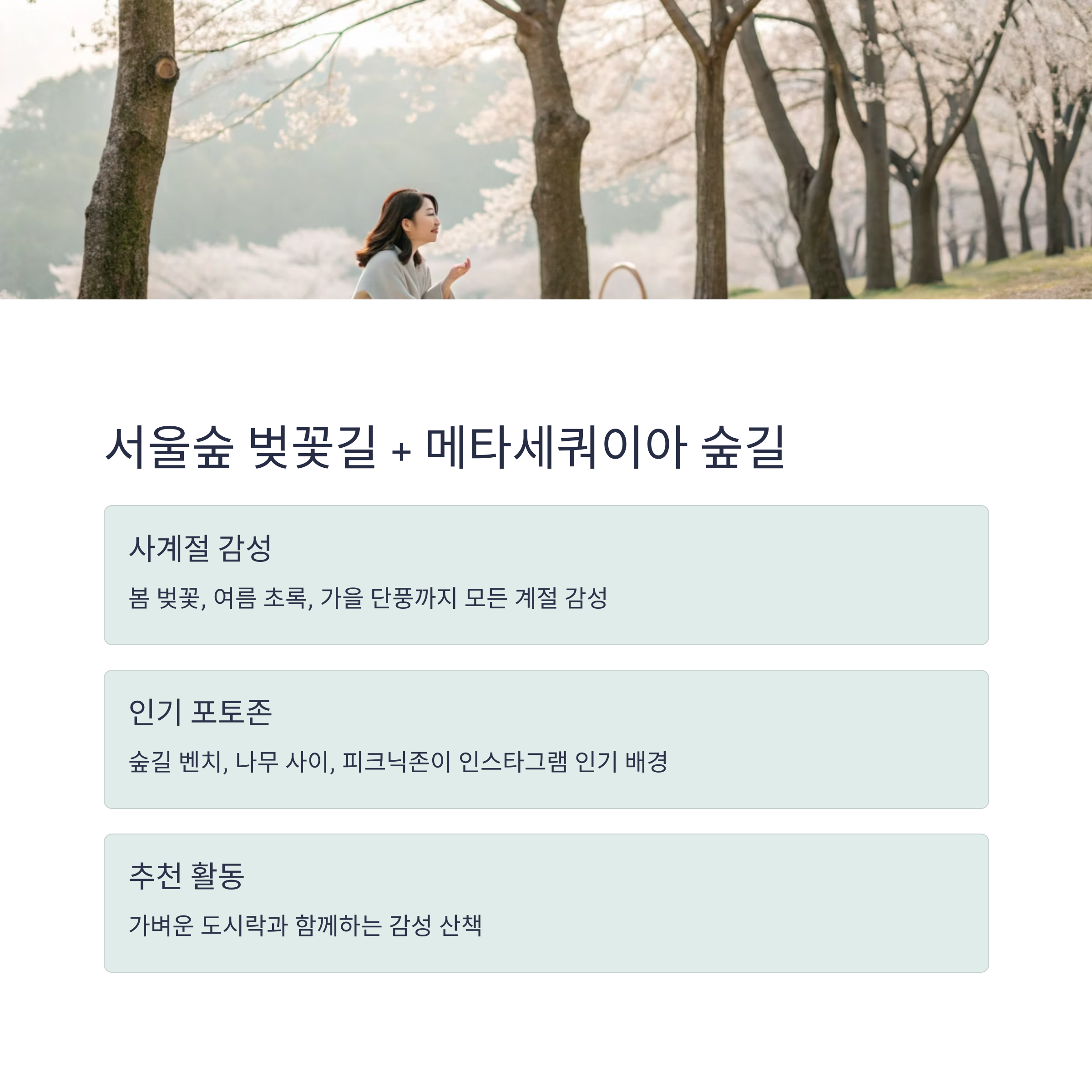 계절 따라 색 바뀌는 서울숲 벚꽃길 + 메타세쿼이아 숲길