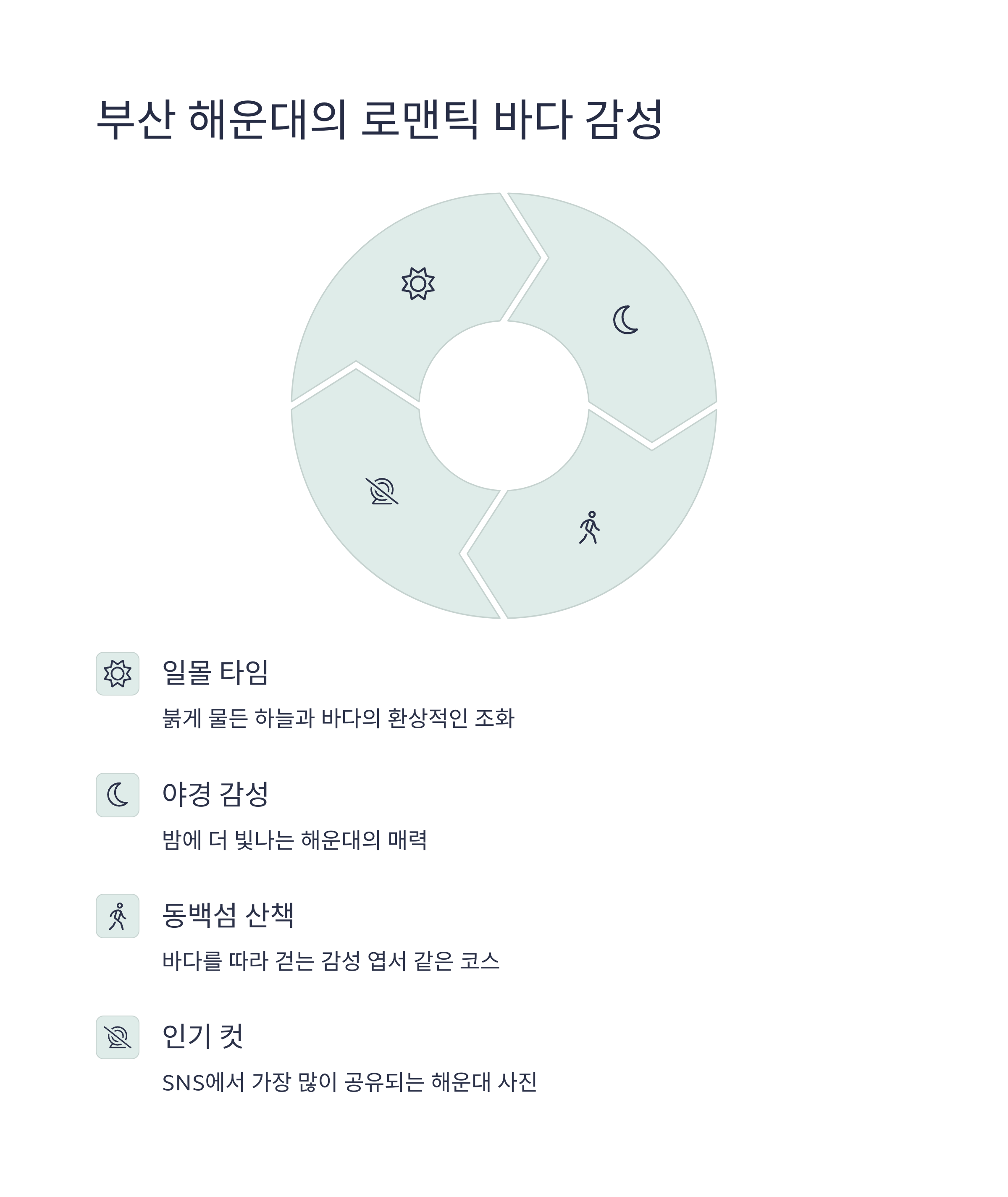 해운대는 낮과 밤이 모두 매력적인 감성 명소입니다.