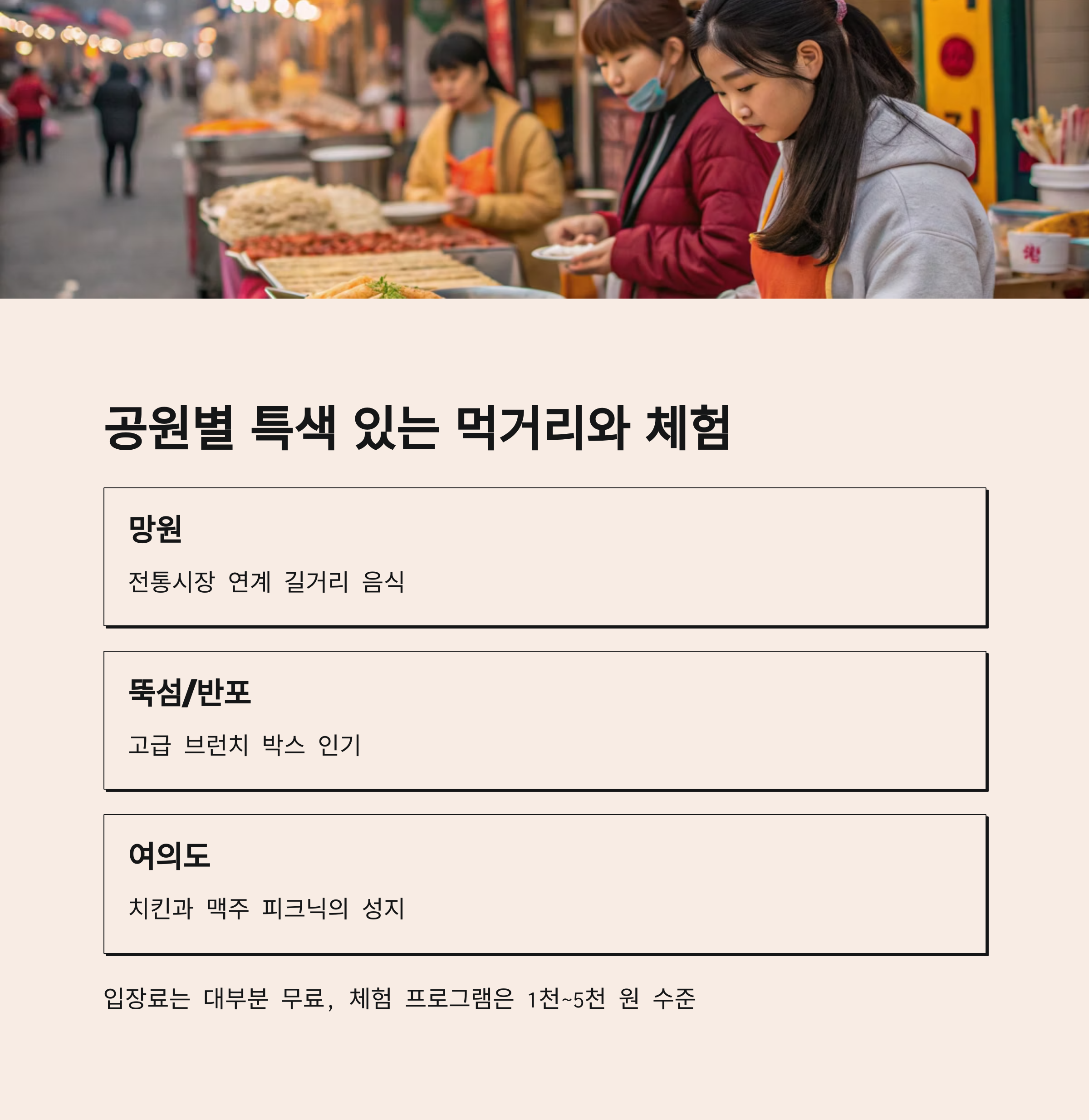 공원별 특색 있는 먹거리와 체험 프로그램