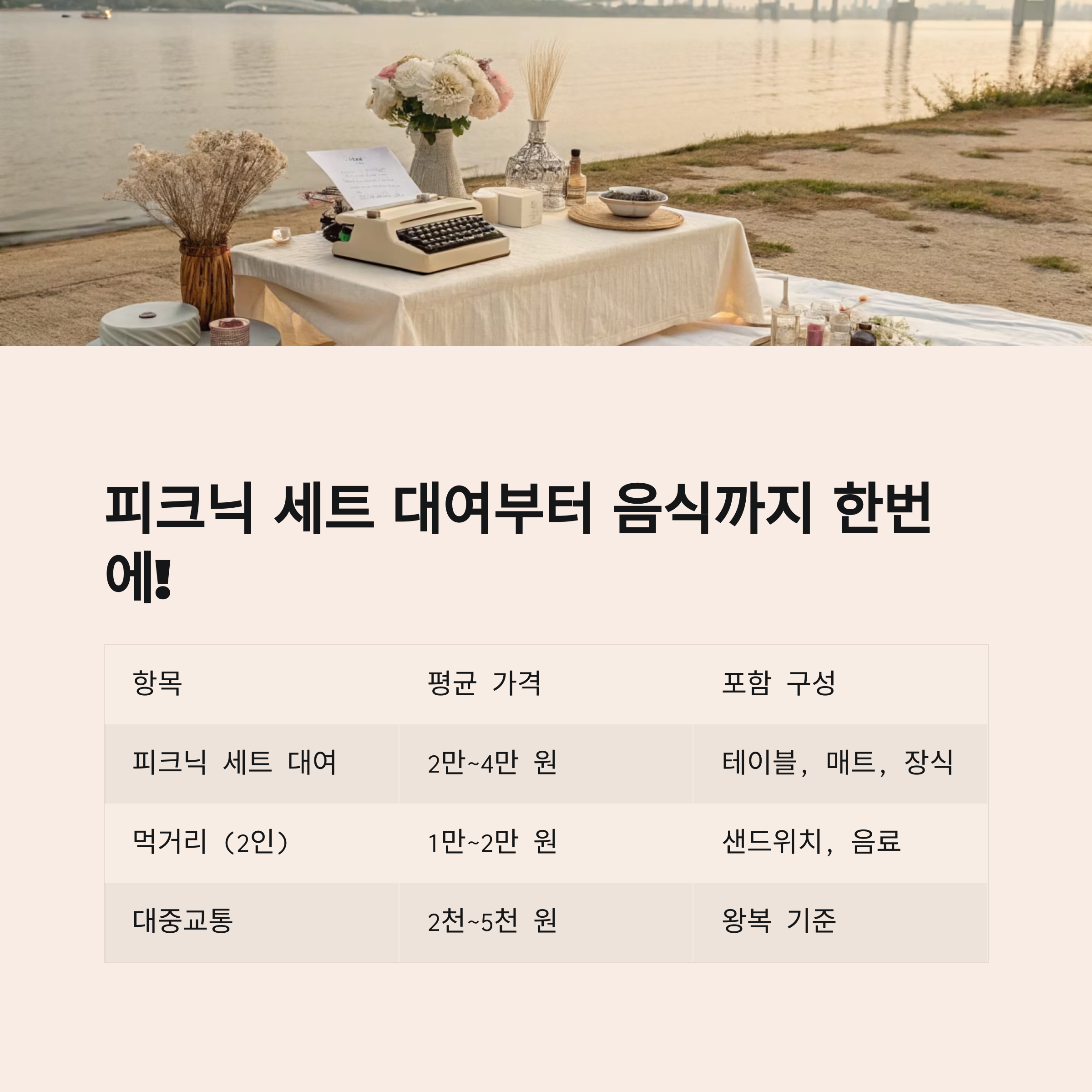 | 피크닉 세트 대여 | 2만~4만 원 | 테이블, 매트, 장식 |