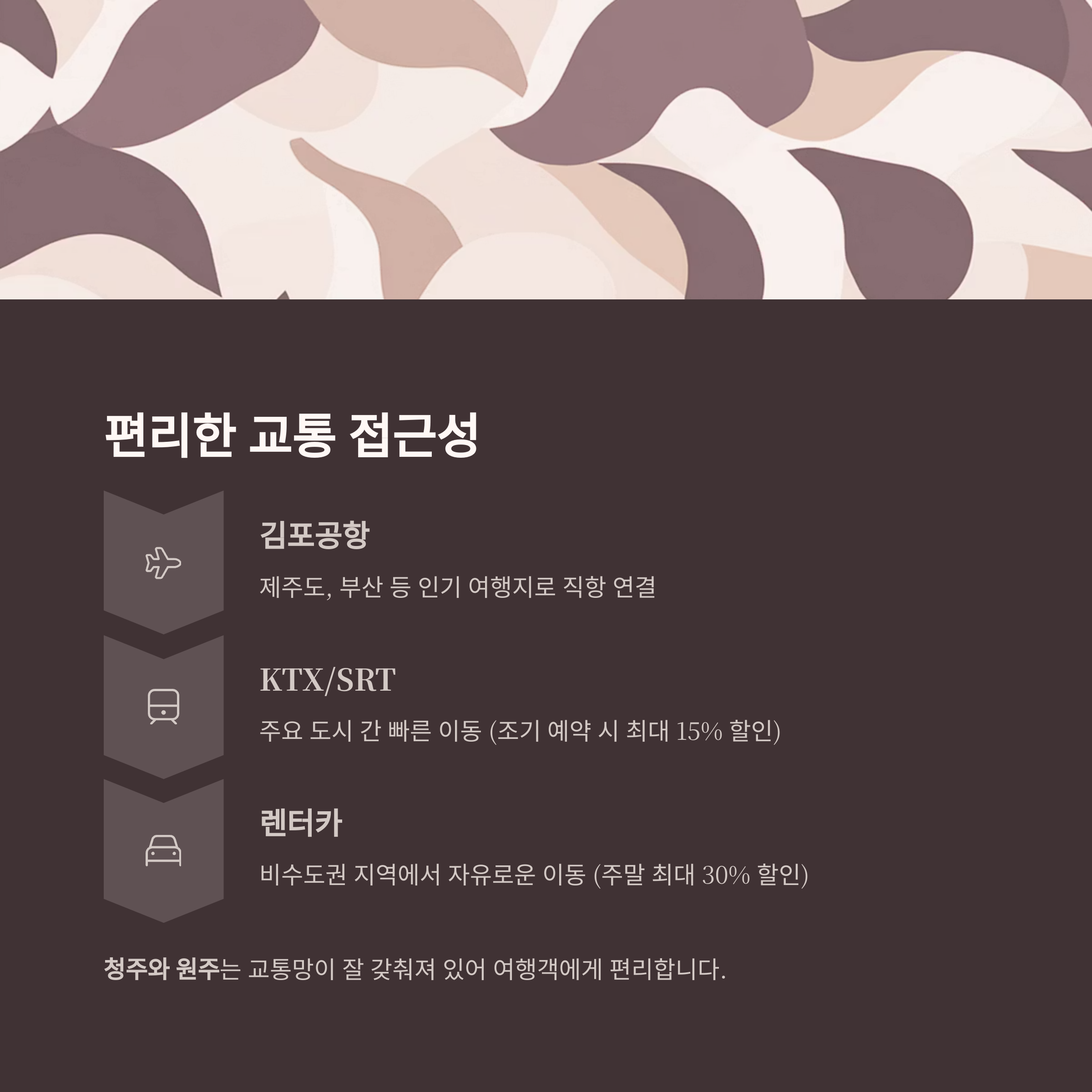 특히 청주와 원주는 교통망이 잘 갖춰져 있어 여행객에게 편리합니다.
