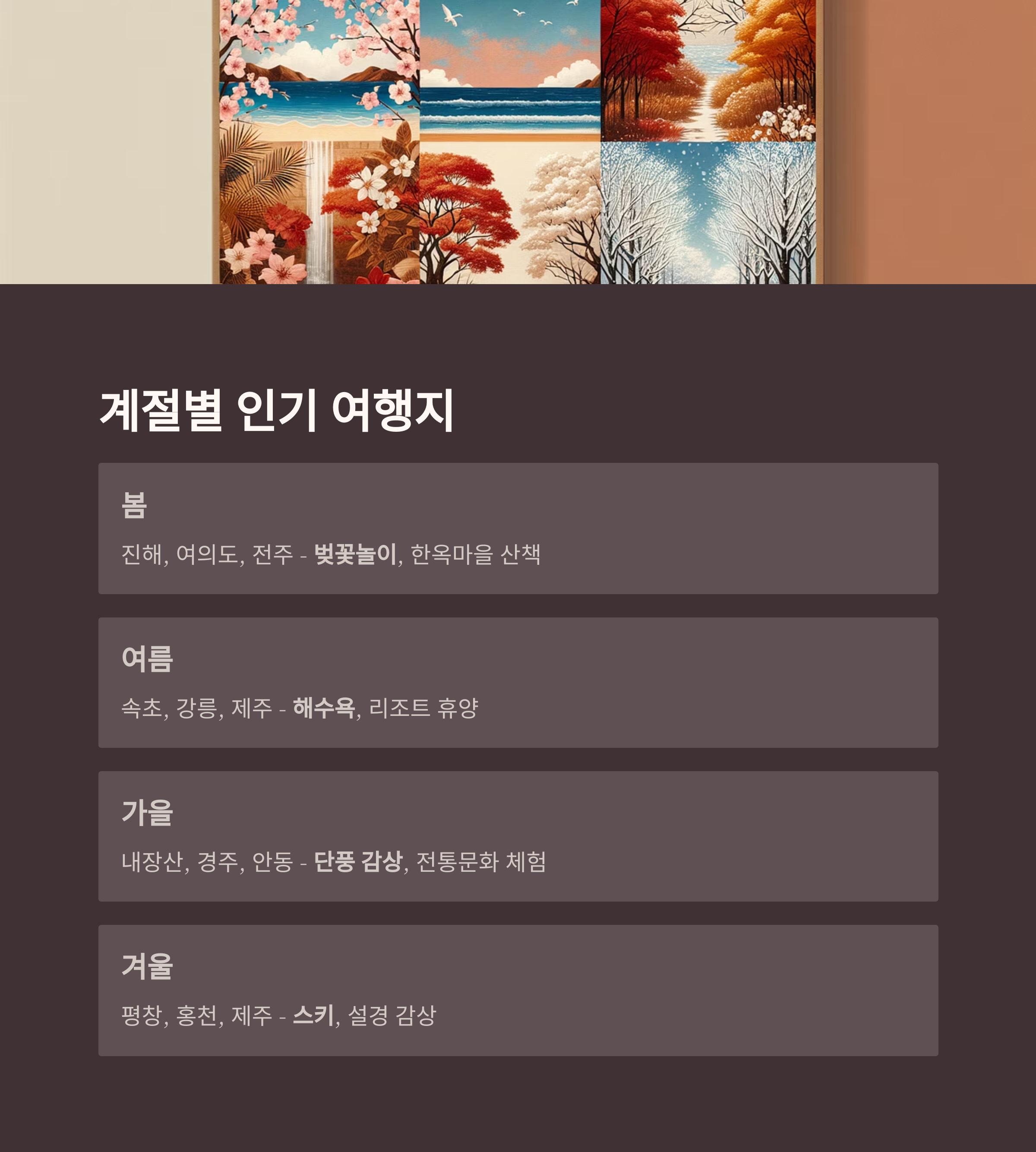 계절별 인기 여행지 추천