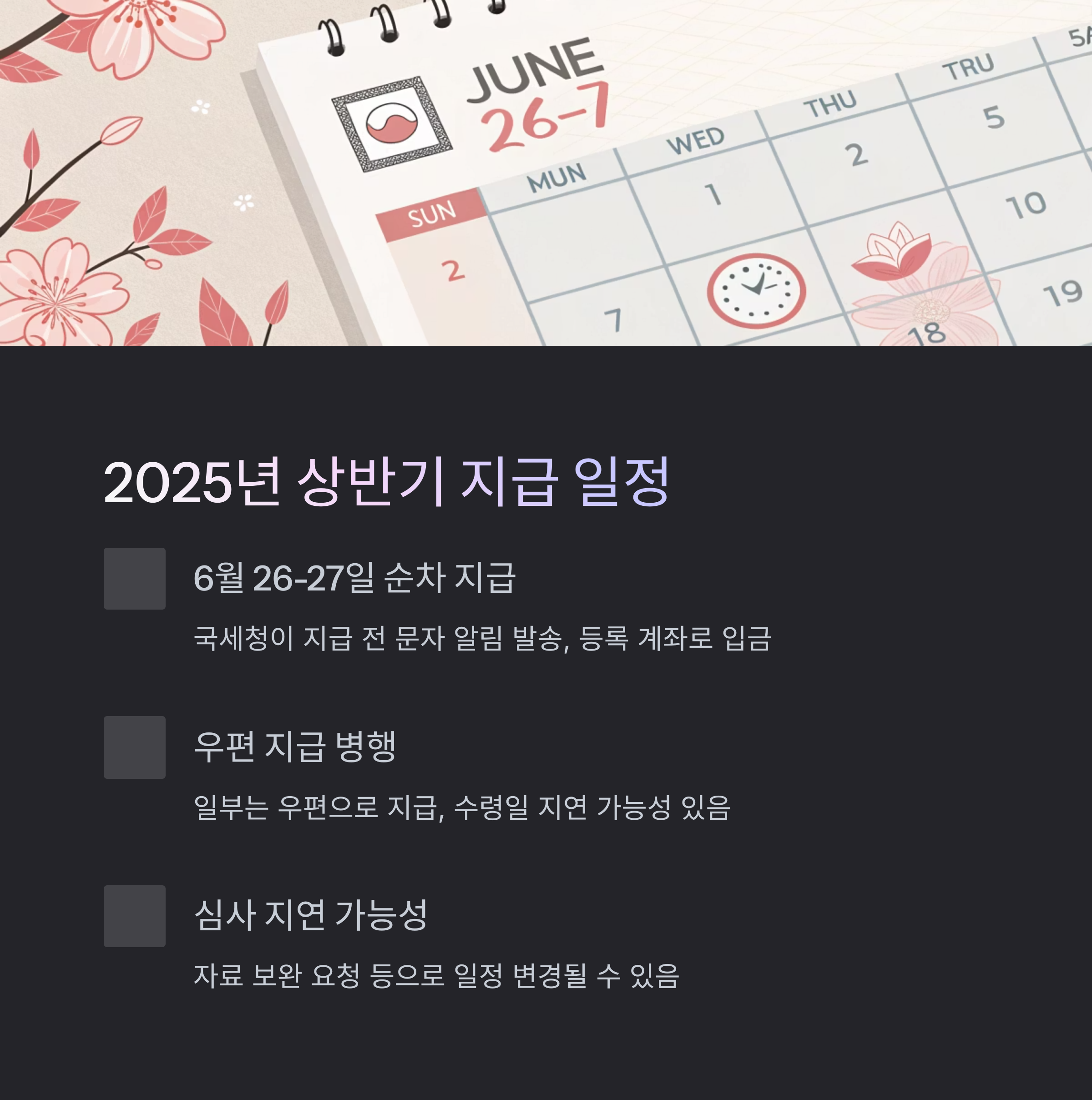 신청 유형에 따른 지급일 차이, 꼭 확인하세요