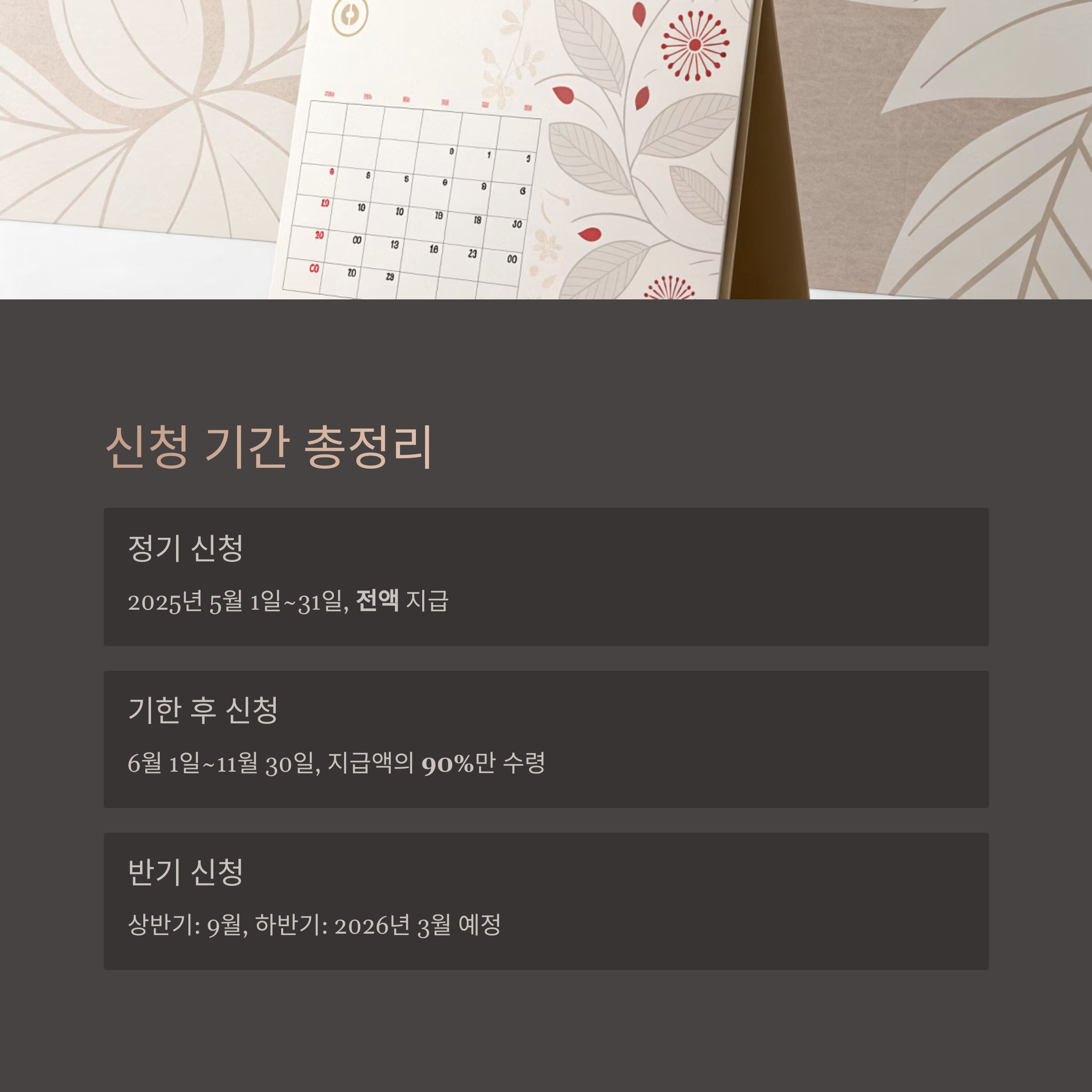 | 기한 후 신청 | 2025년 6월 1일 ~ 11월 30일 | 지급액의 "90%"만 수령 |