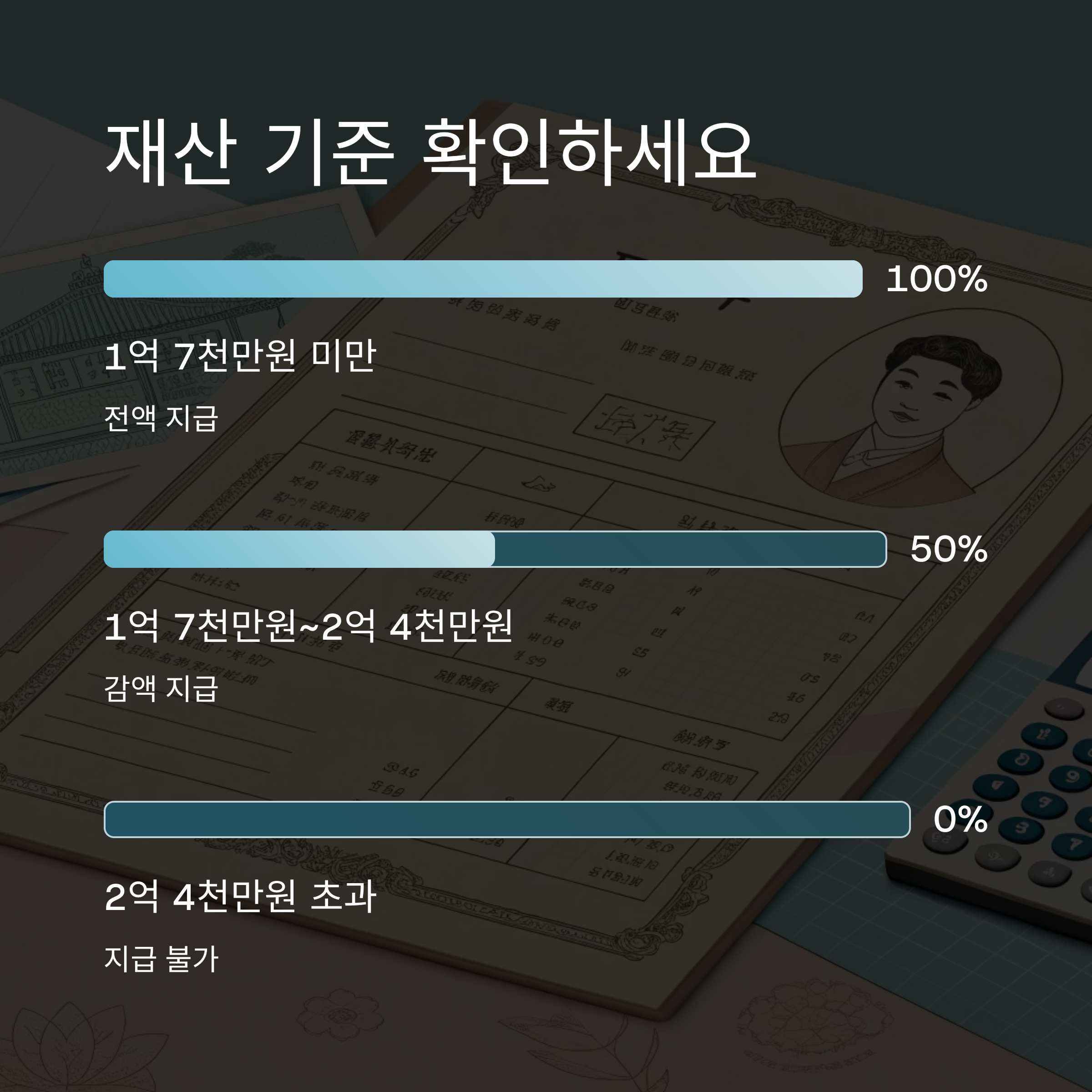 재산이 많다고 무조건 배제되는 건 아니지만, 감액 기준을 잘 확인하세요.
