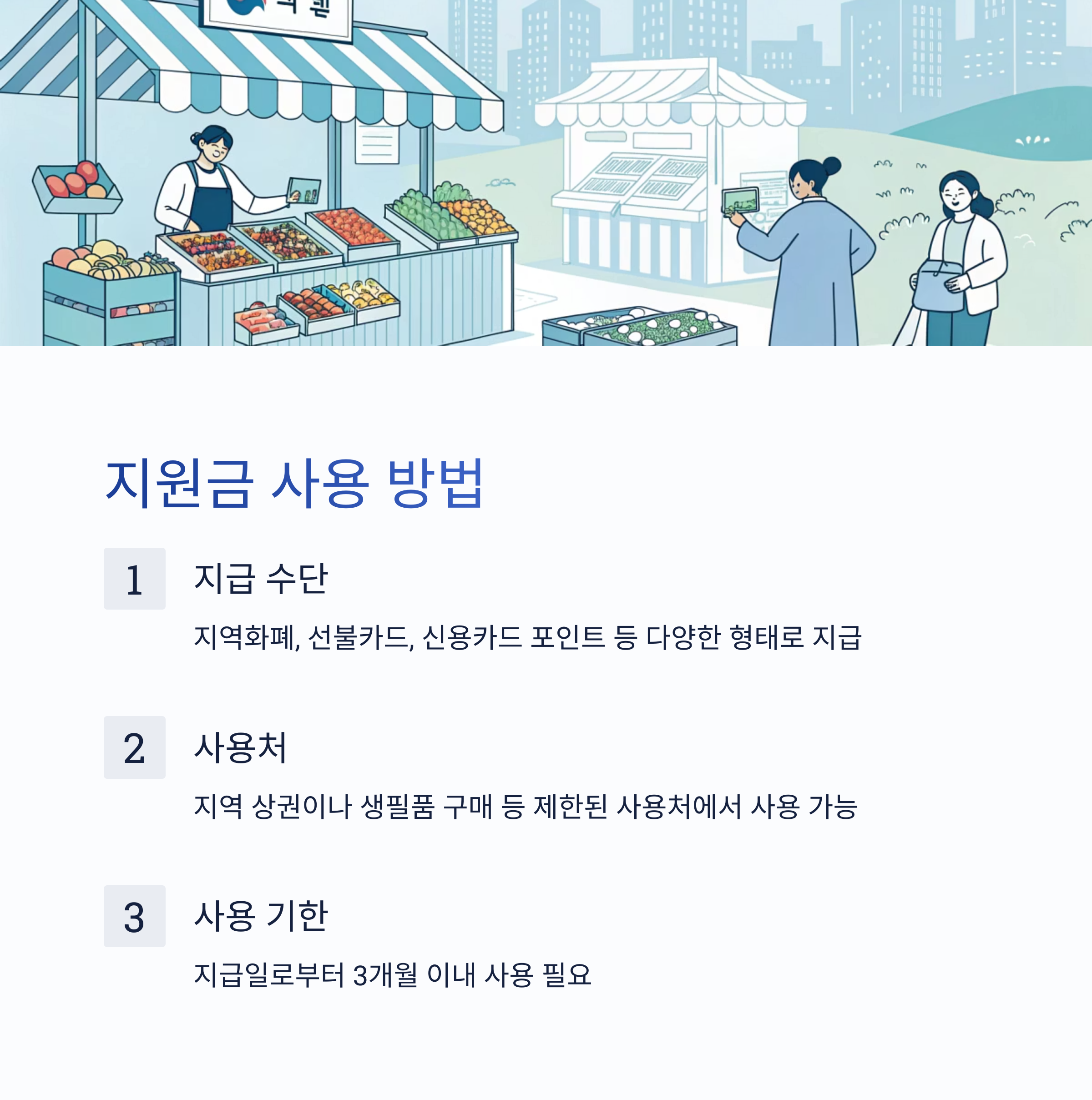 대부분 지역 상권이나 생필품 구매 등 제한된 사용처에서 사용할 수 있게 됩니다.