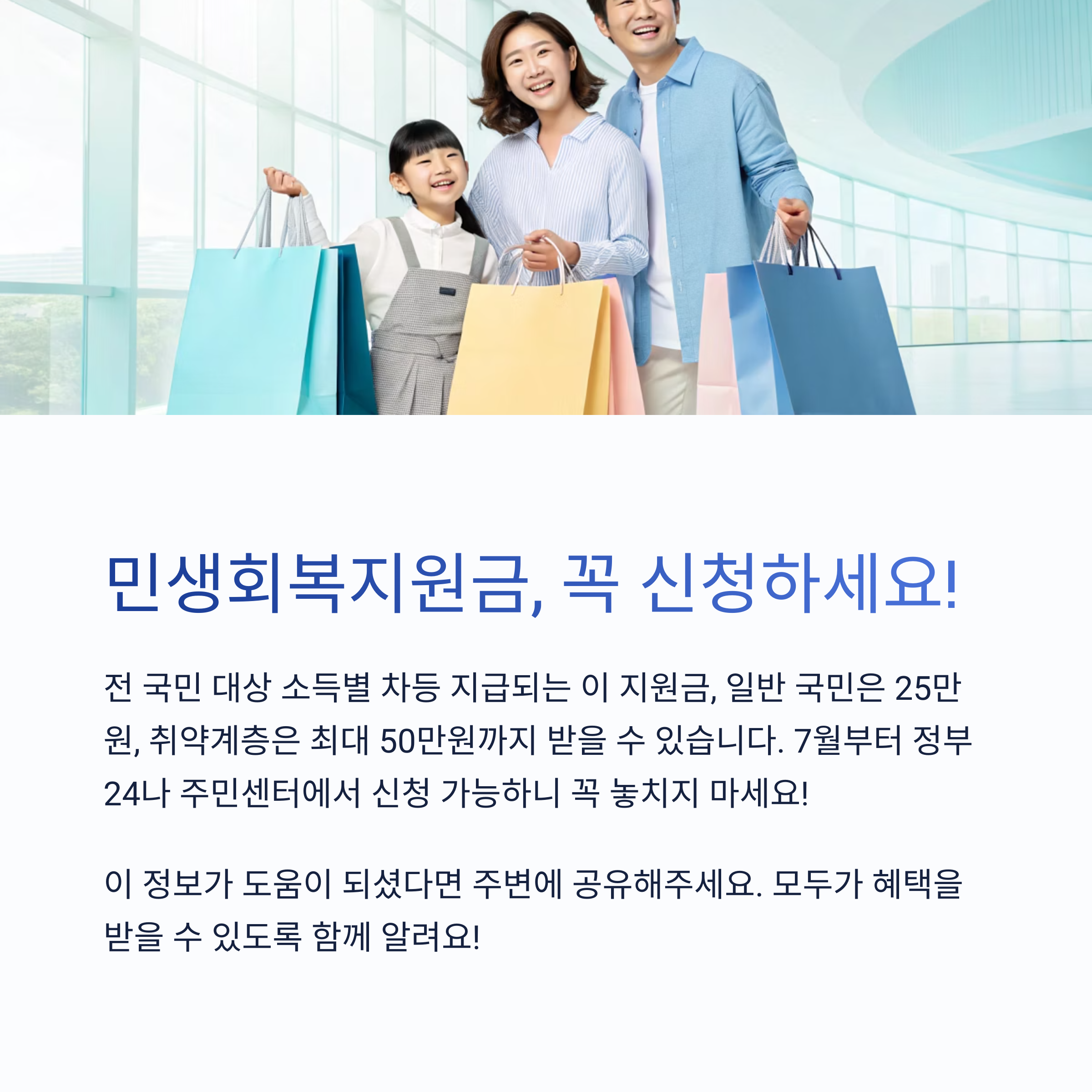 2025년 정부가 추진 중인 민생회복지원금은 전국민 대상이며, 최대 52만원까지 받을 수 있습니다. 소득에 따라 차등 지급되는 방식으로 일반 국민도 최소 25만원은 받을 수 있기 때문에 신청 시기를 놓치지 않는 것이 중요합니다. 온라인과 오프라인 모두 신청 가능하며, 정부24를 통한 신청이 가장 안전합니다. 이번 지원금은 지역경제 활성화를 목표로 사용처가 제한될 수 있으며, 예산 규모도 약 13조원에 달합니다. 지금 이 정보를 숙지하셔서 반드시 혜택을 누리시길 바랍니다.