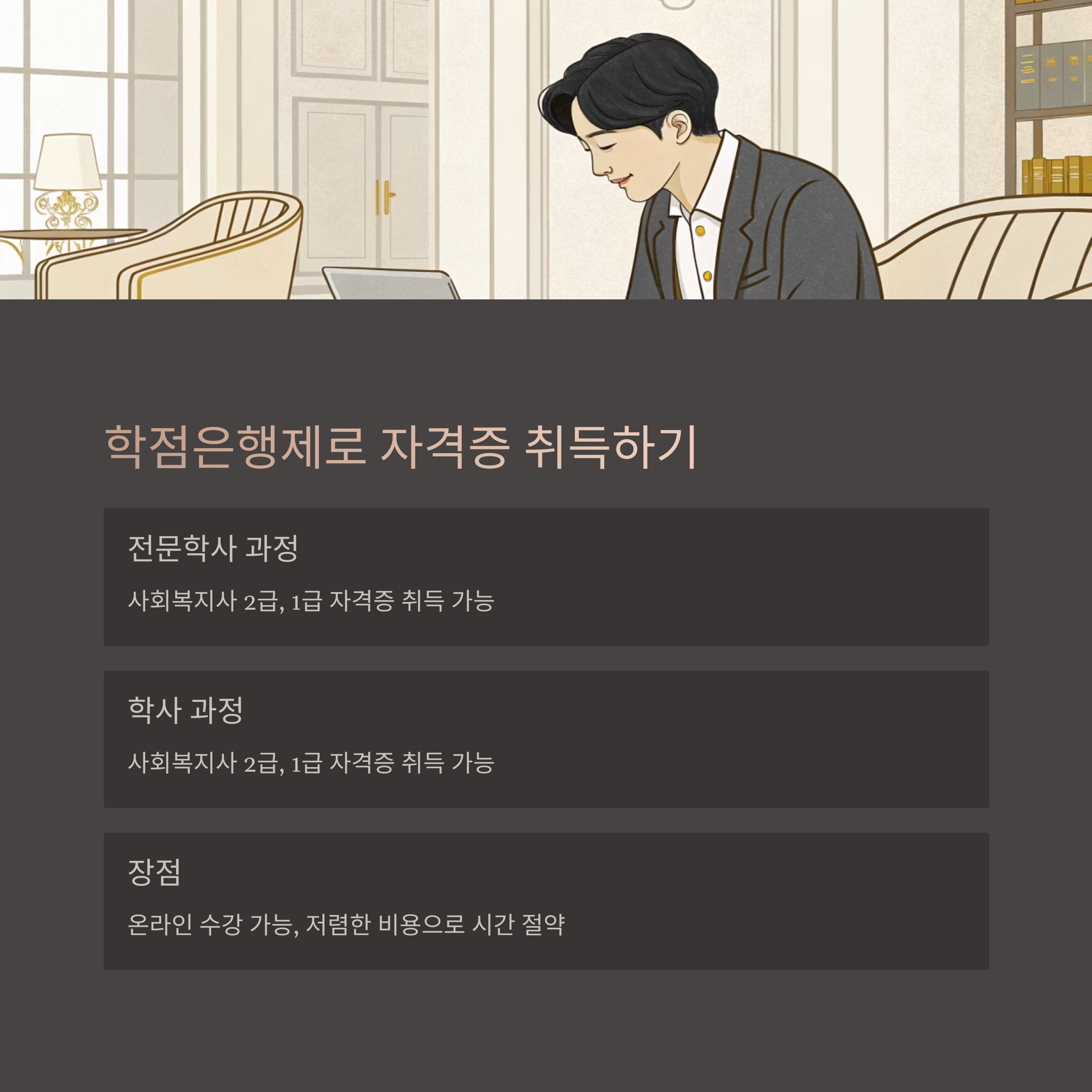 정규 대학 과정을 거치지 않아도 학점은행제를 통해 자격증을 취득할 수 있습니다.