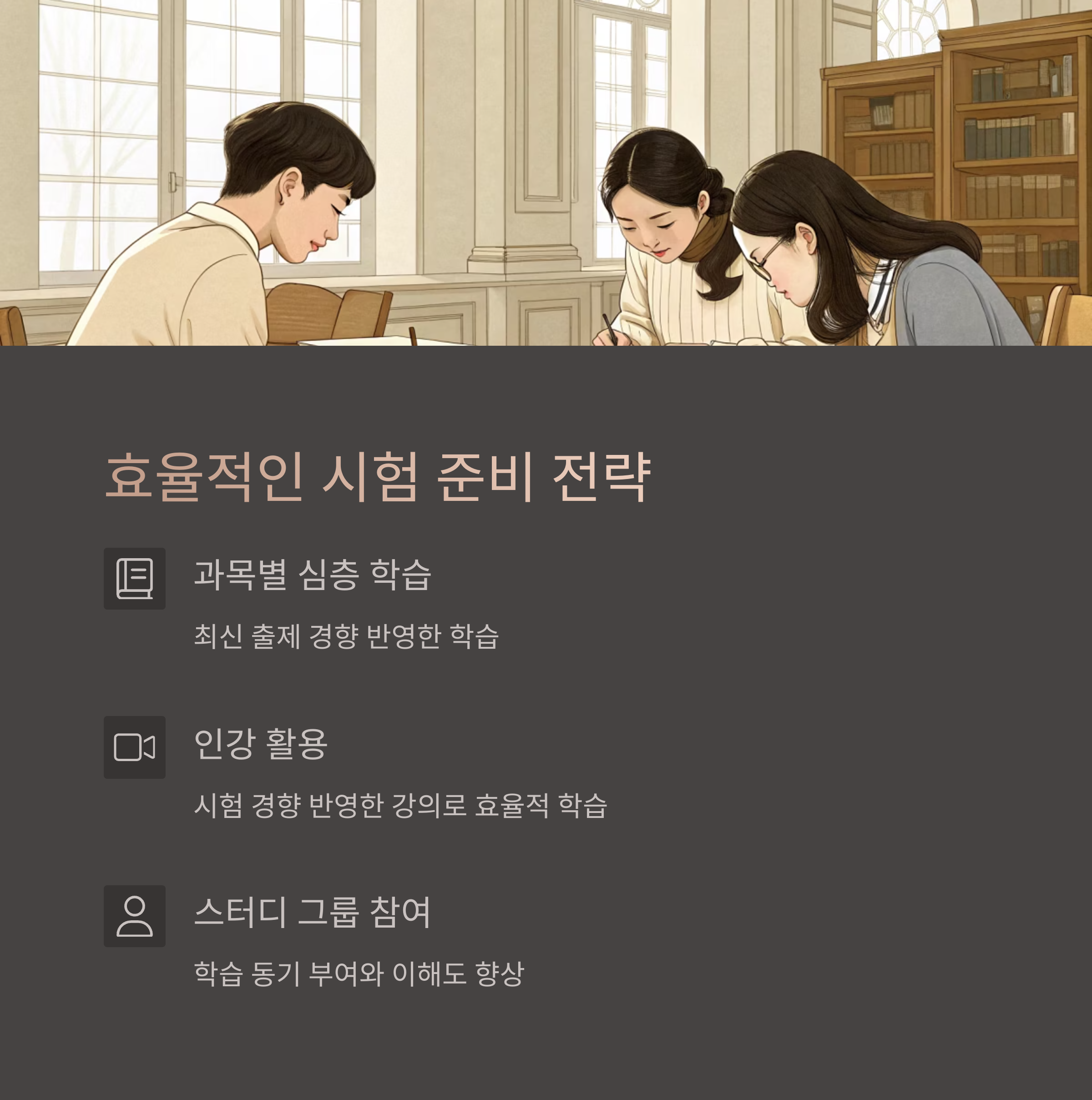 - 인강(인터넷 강의) 활용: 시험 경향을 반영한 강의를 통해 효율적인 학습이 가능합니다.