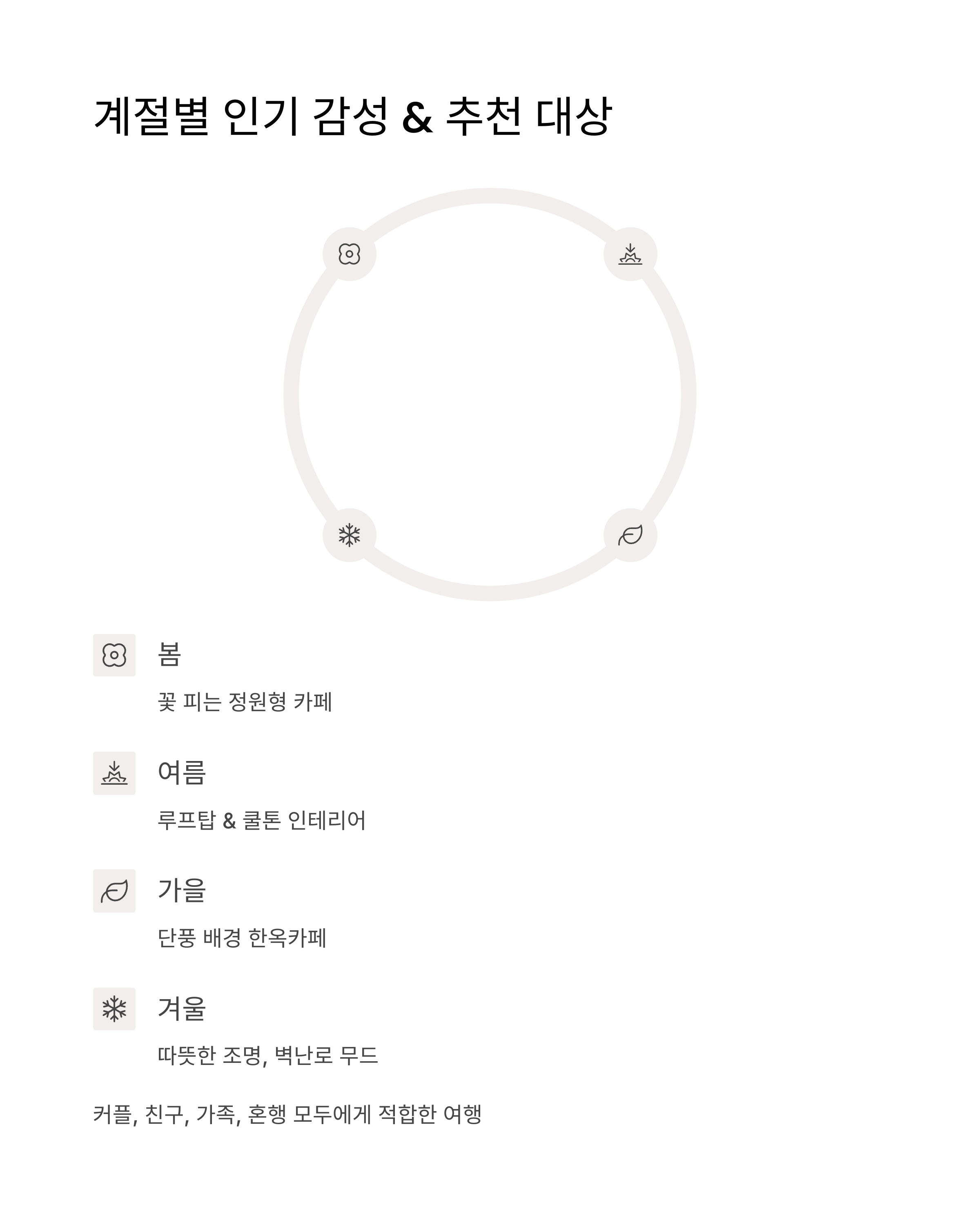 추천 대상 & 계절별 인기 감성