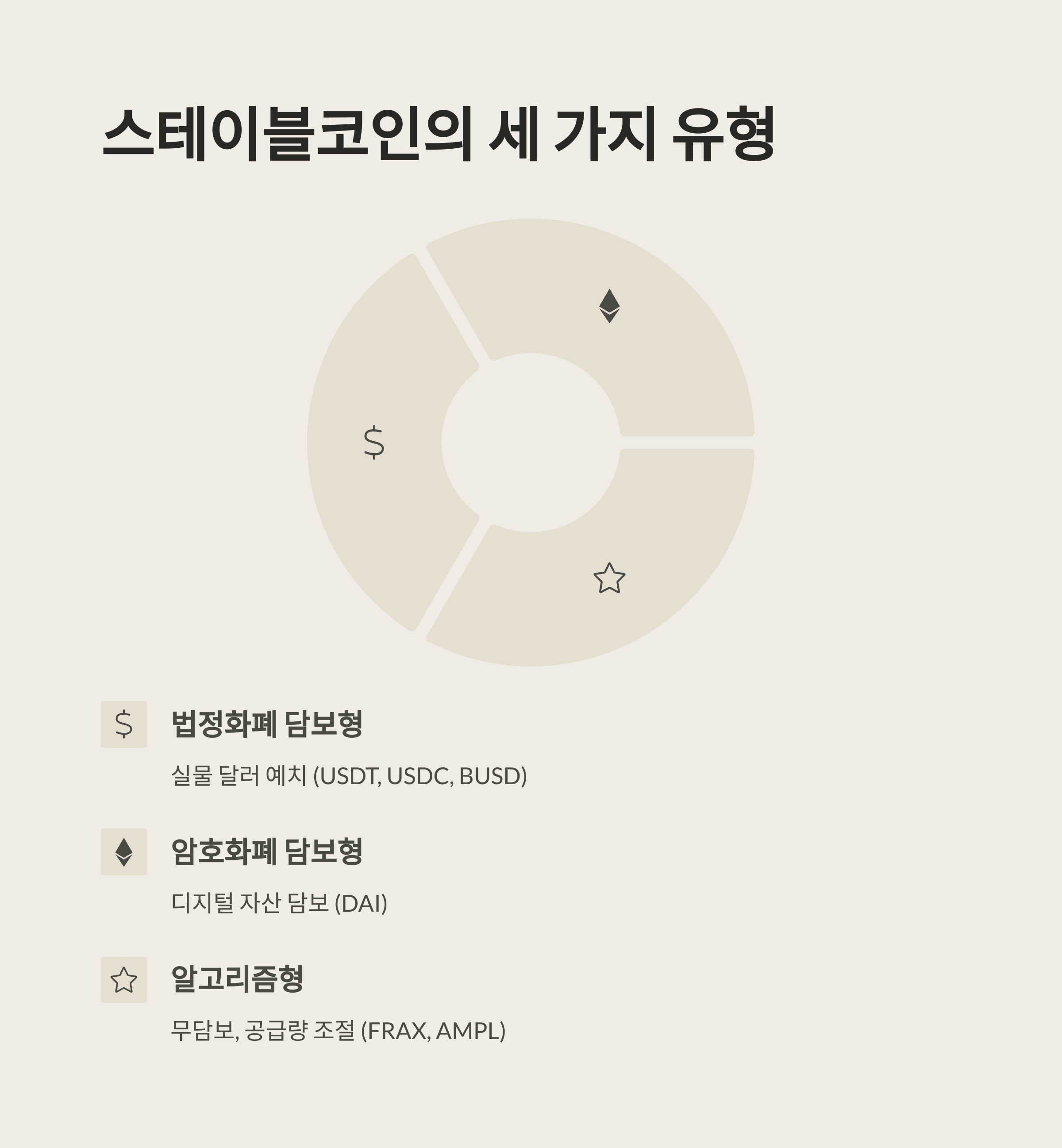 스테이블코인은 크게 세 가지로 나뉩니다.