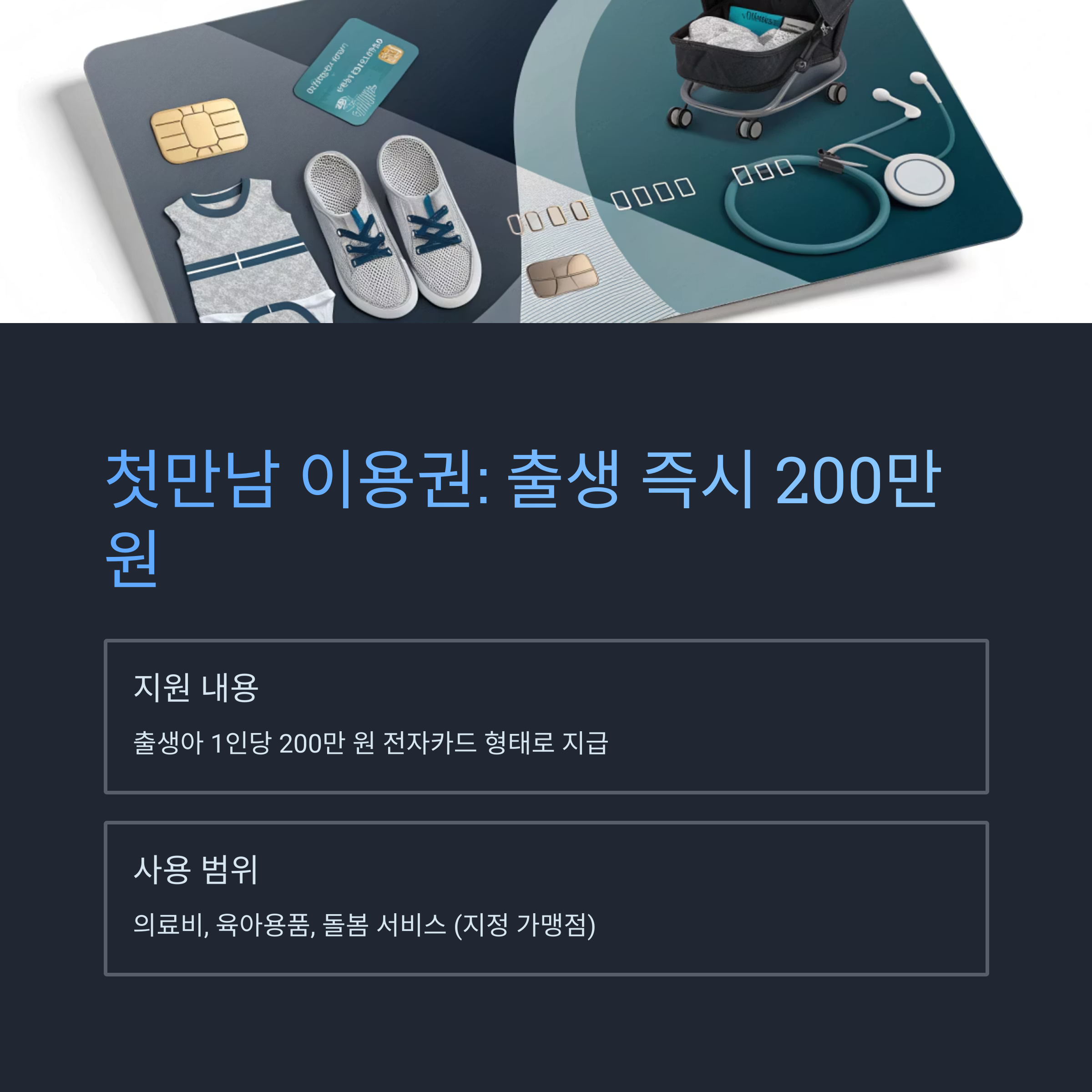 2025년 신생아 바우처 제도의 핵심인 ‘첫만남 이용권’은 출생아 1인당 200만 원씩 전자카드 형태로 지급됩니다.
