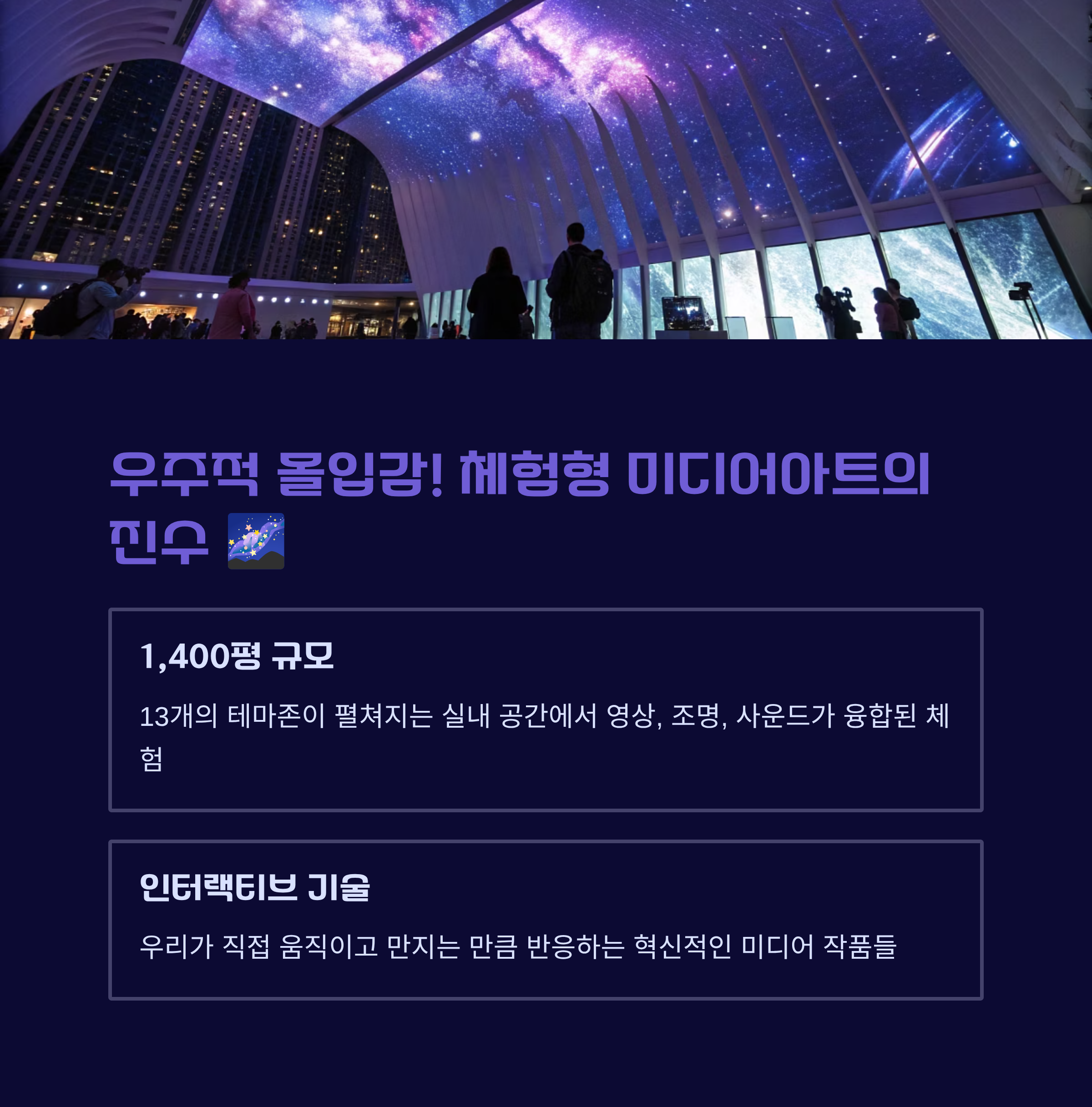 첫째, 우주적 몰입감! 체험형 미디어아트의 진수 🌌