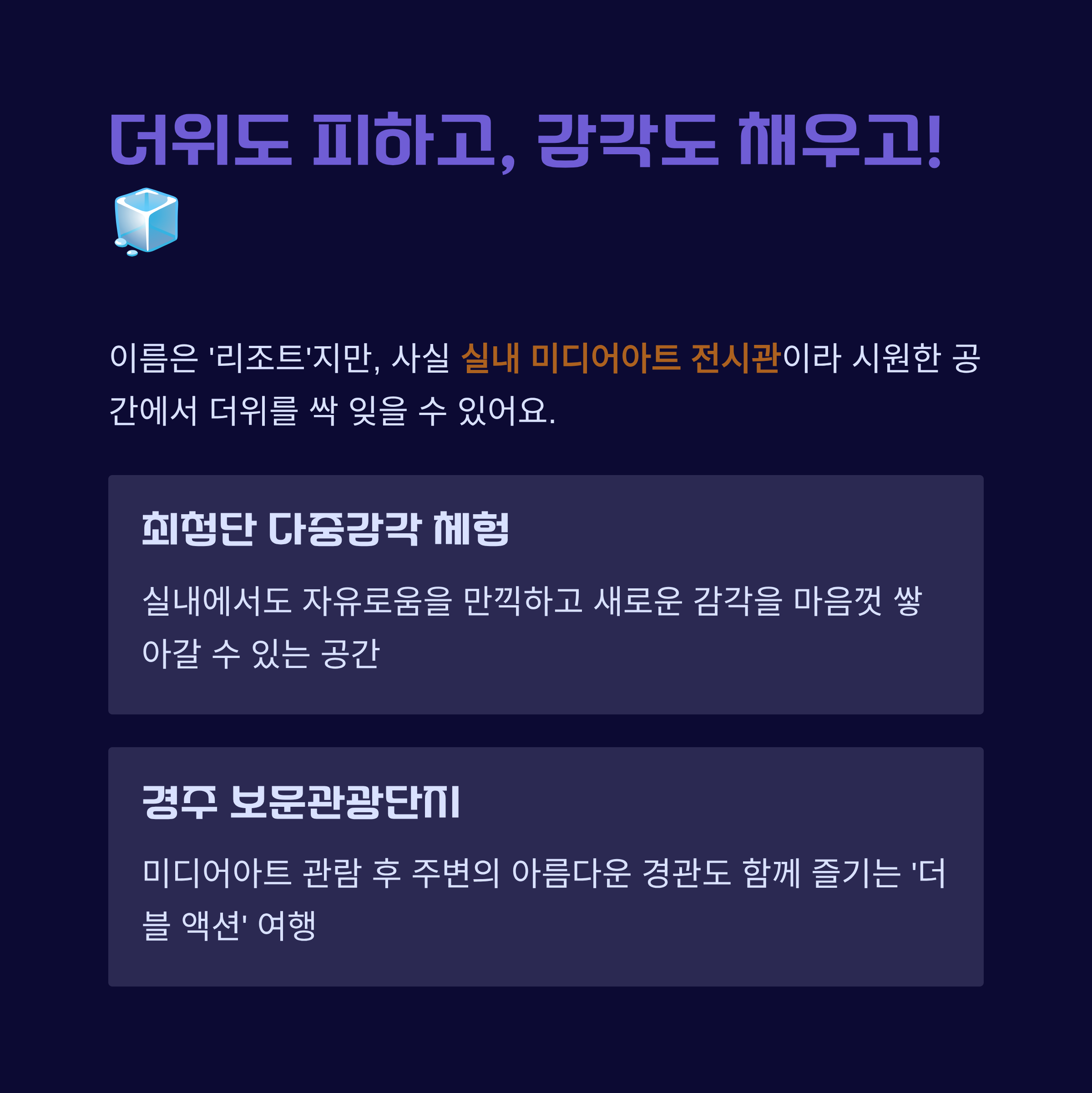넷째, 더위도 피하고, 감각도 채우고! 🧊