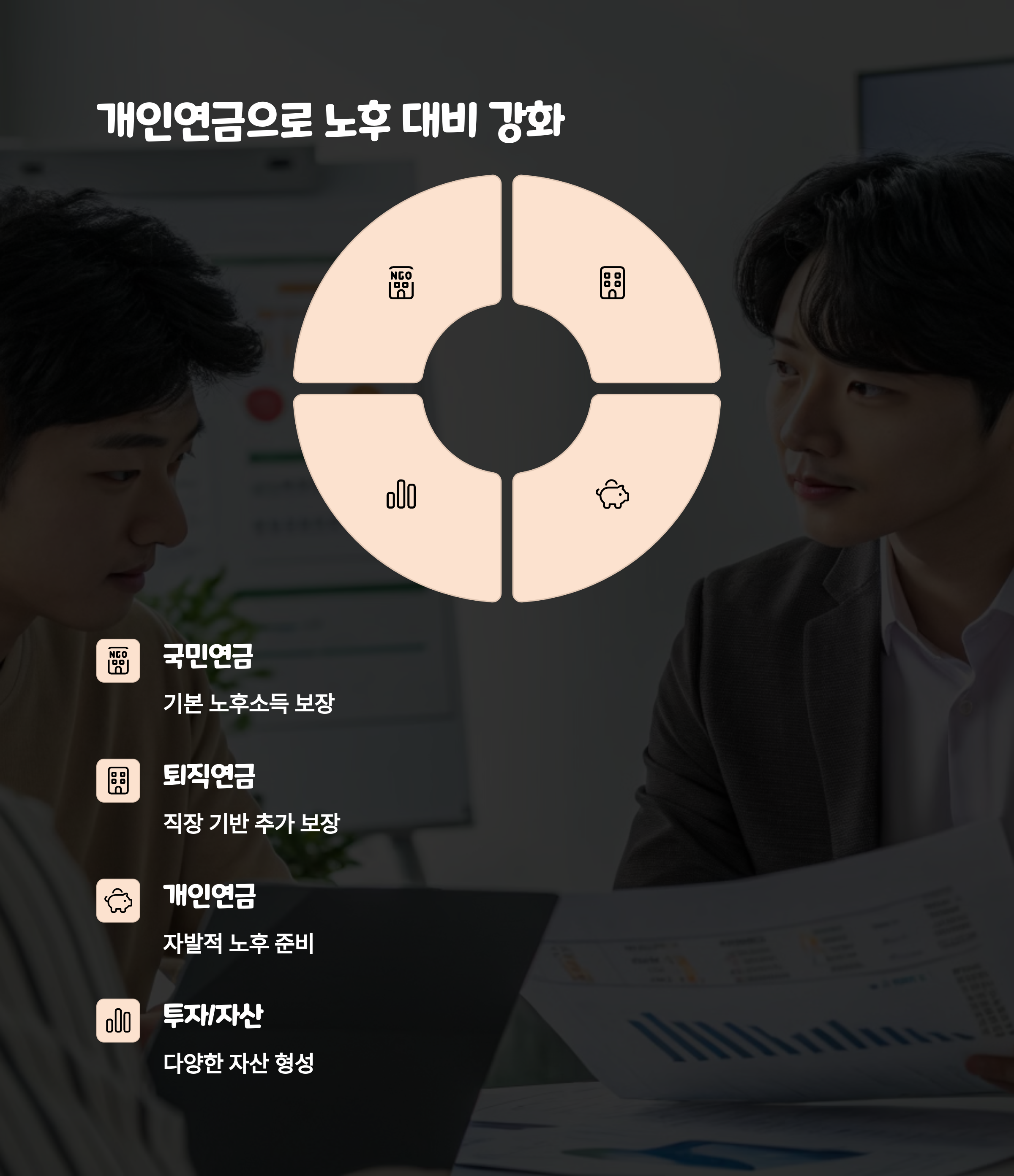 국민연금만으로는 충분한 노후 대비가 어렵습니다. 개인 연금 상품에 대해 알아보고, 자신의 재정 상황에 맞는 연금 계획을 세워보세요.