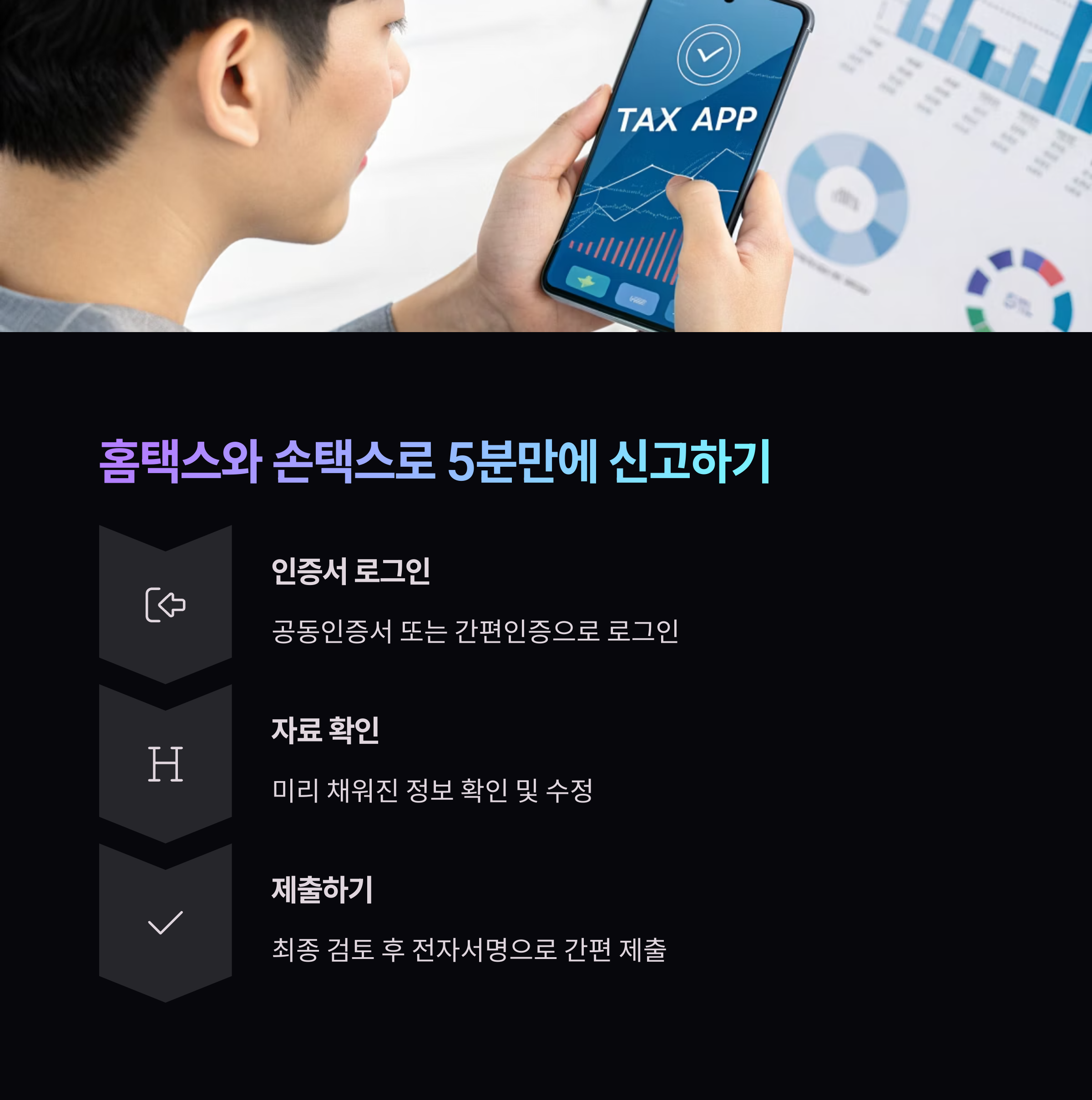 모바일 앱인 손택스 역시 동일한 절차로 간편하게 신고가 가능합니다.