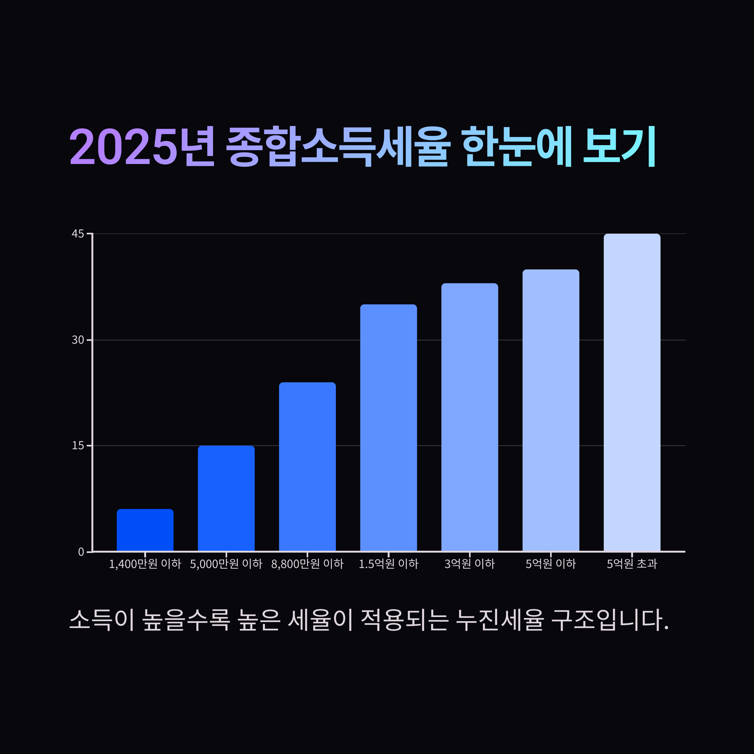 2025년 신고 기준 소득세율은 6%부터 45%까지 누진세 구조를 따릅니다.