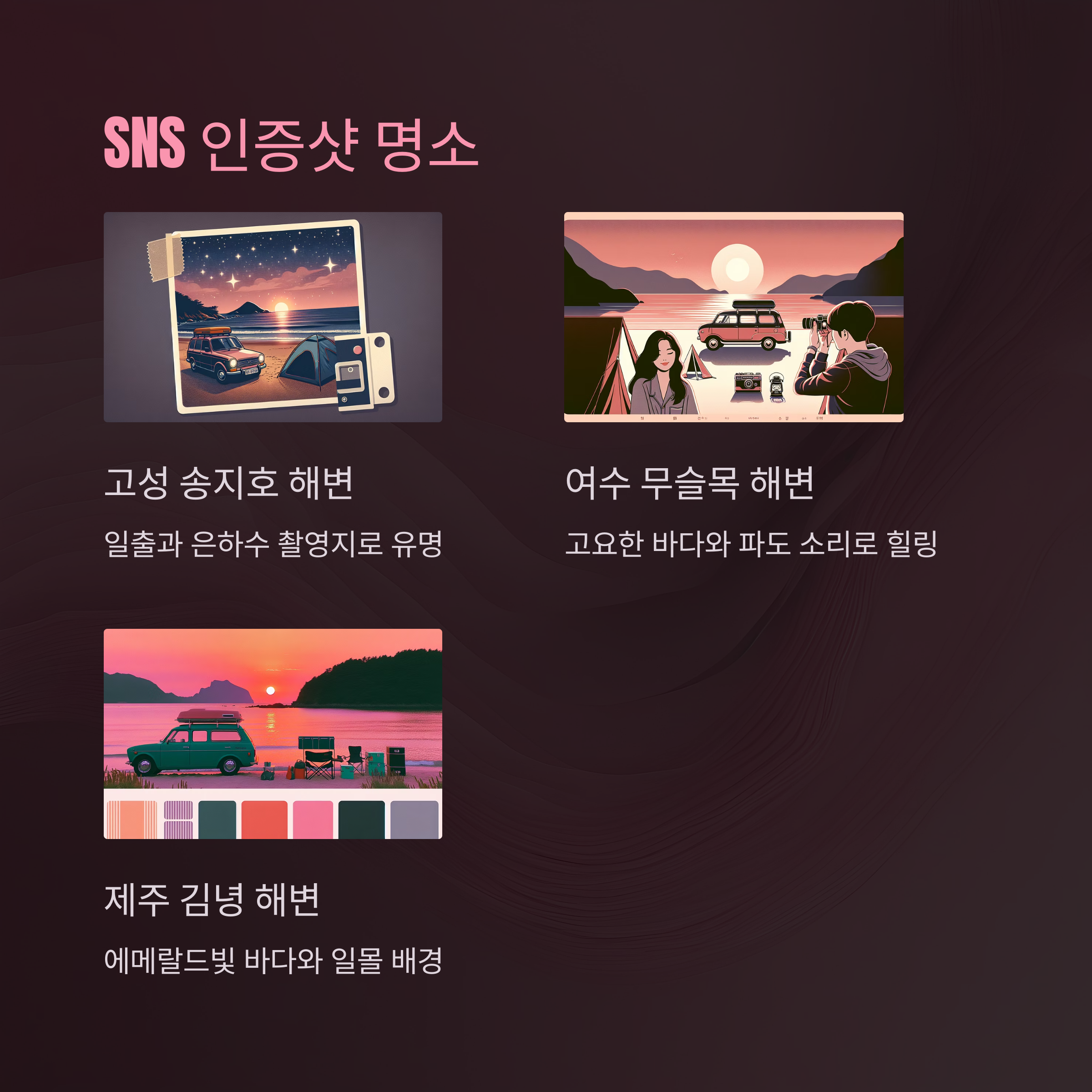 차박 여행에서 빼놓을 수 없는 SNS 인증샷 명소도 소개합니다.