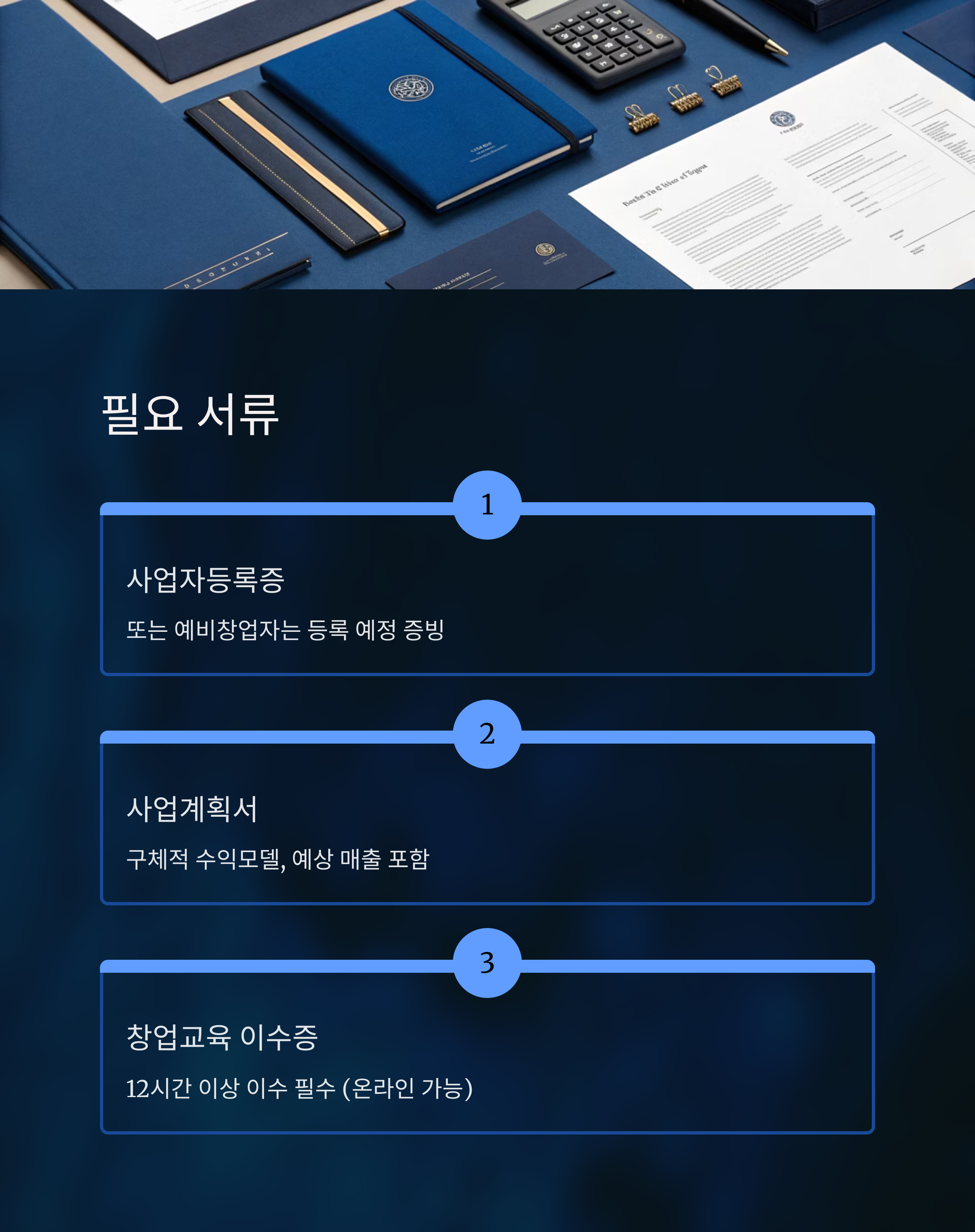 사업계획서와 교육 이수 여부도 중요하게 평가됩니다.